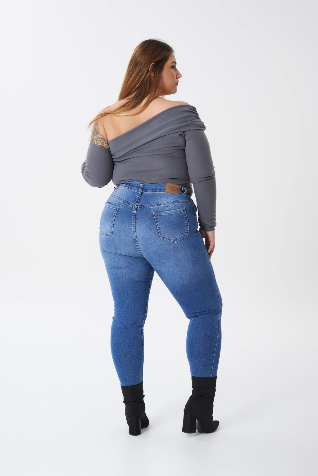 ALVEAR- SKINNY CURVY AZUL ELASTIZADO TIRO ALTO TALLES 48 AL 56 STRIVEN