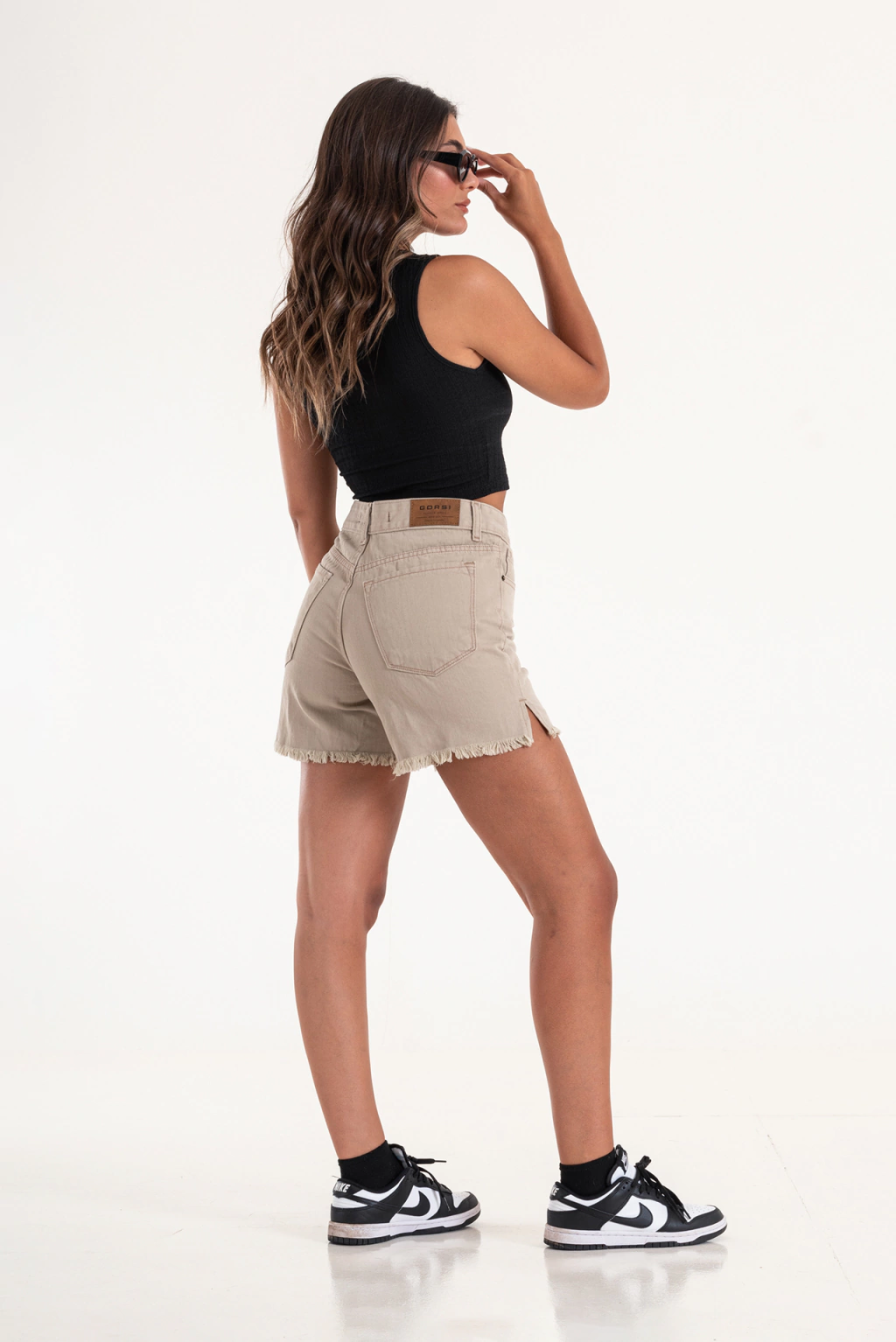 ART.3596 | SHORT BEIGE RIGIDO CON ABERTURAS DESFLECADO TIRO ALTO TALLES DEL 36 AL 46 GORSI
