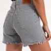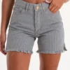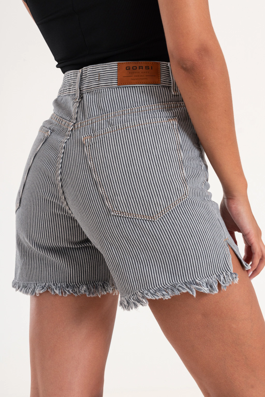 ART.3598 | SHORT RAYADO GRIS RIGIDO CON ABERTURA DESFLECADO TIRO ALTO TALLES 48 AL 42 GORSI