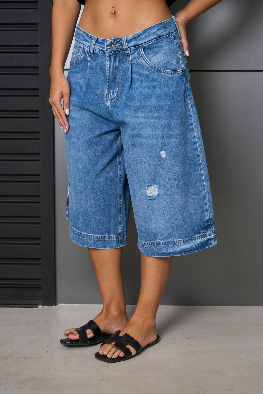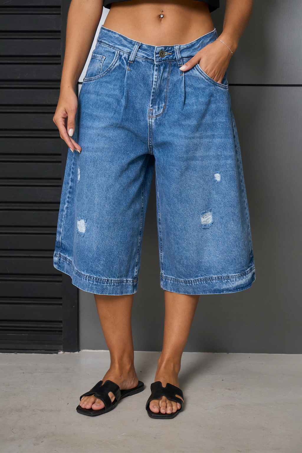 ART.3752 | BERMUDA BAGGY NEVADO DOBLES EN BOTA CON PINSAS Y MINI ROTURAS TIRO MEDIO TALLES 36 AL 46 GORSI