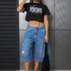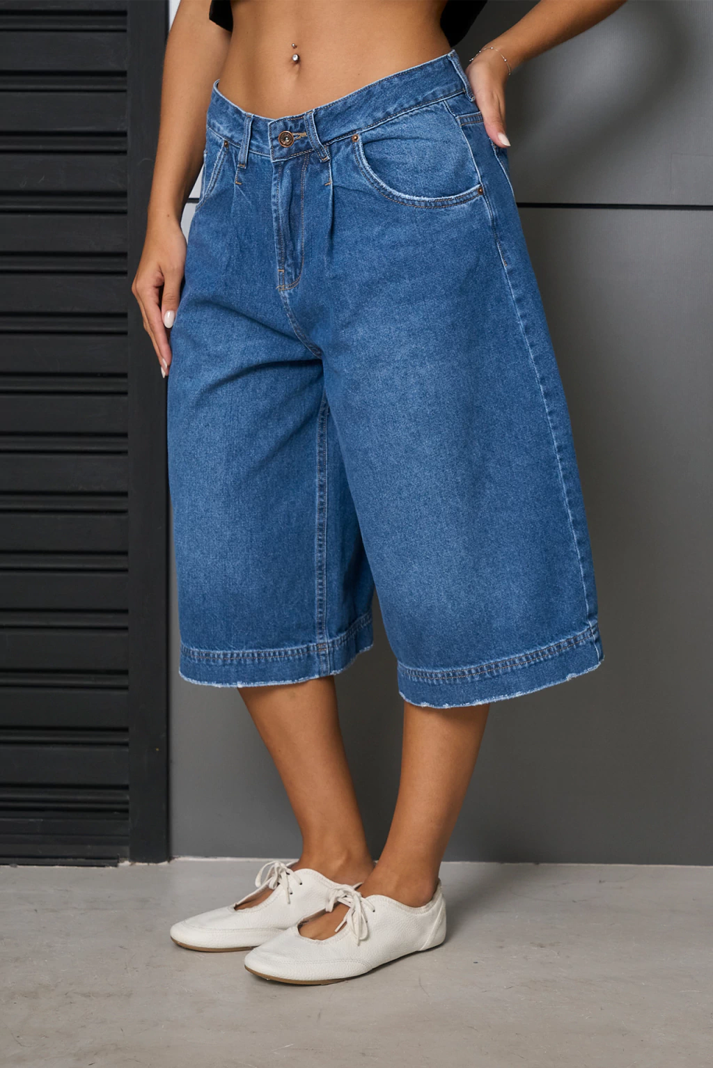 ART.3753 | BERMUDA BAGGY AZUL DESGASTADO RIGIDO PINSAS DOBLES CON DESGASTE TRIO MEDIO TALLES 36 AL 46 GORSI