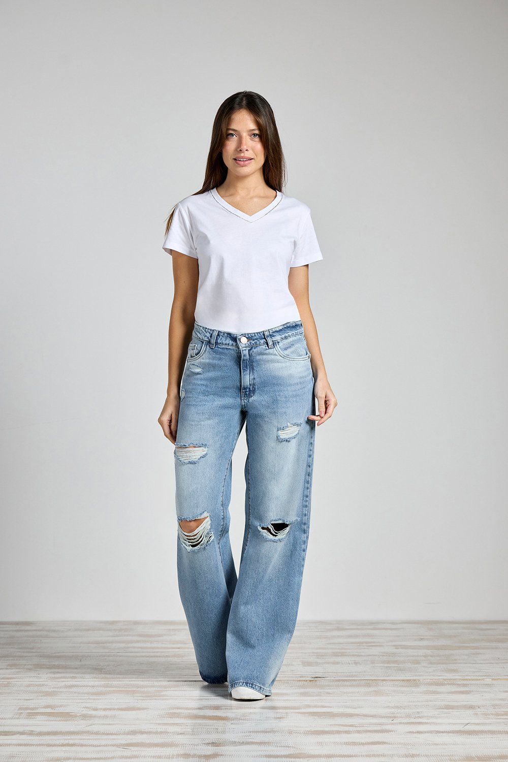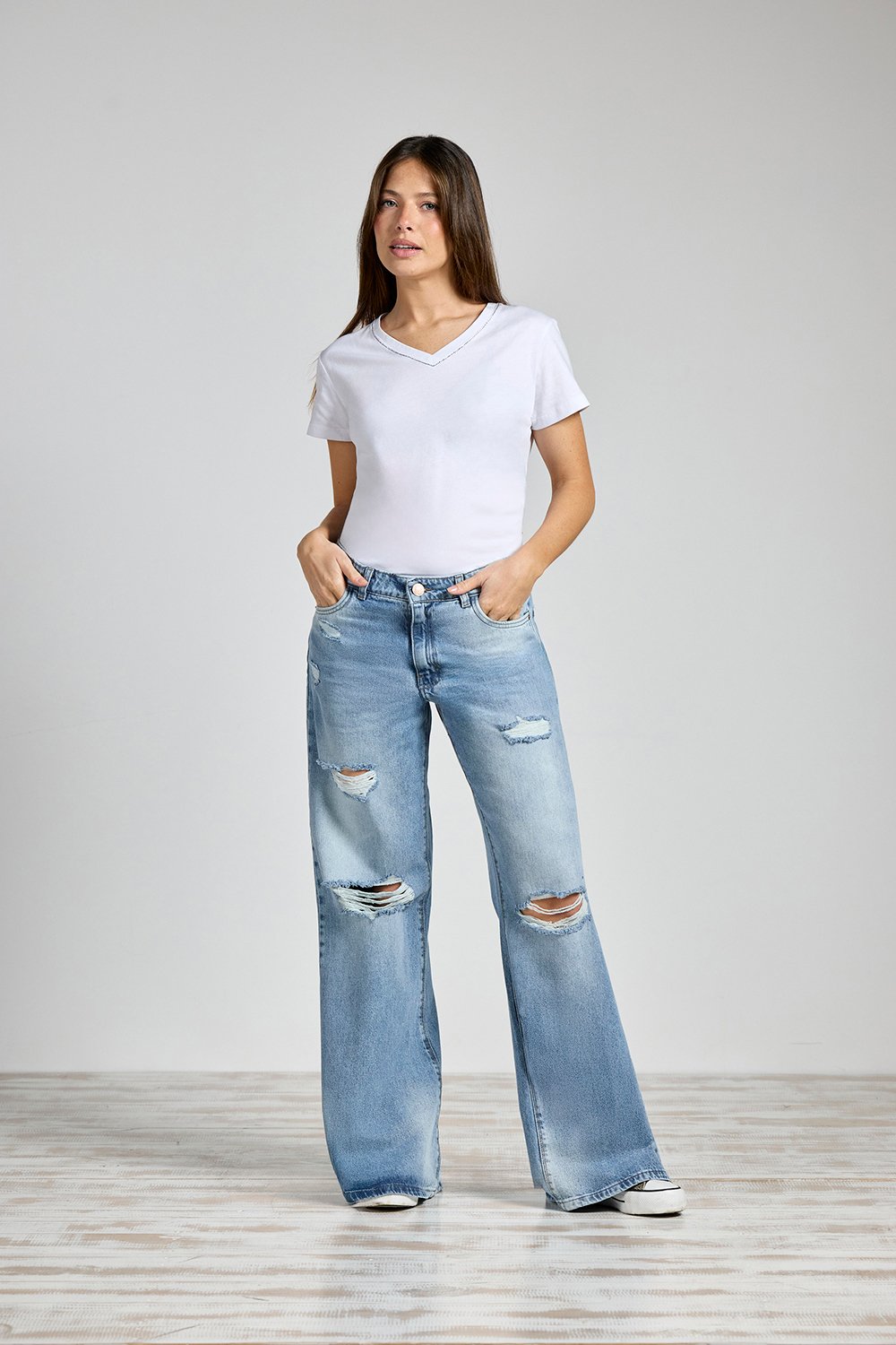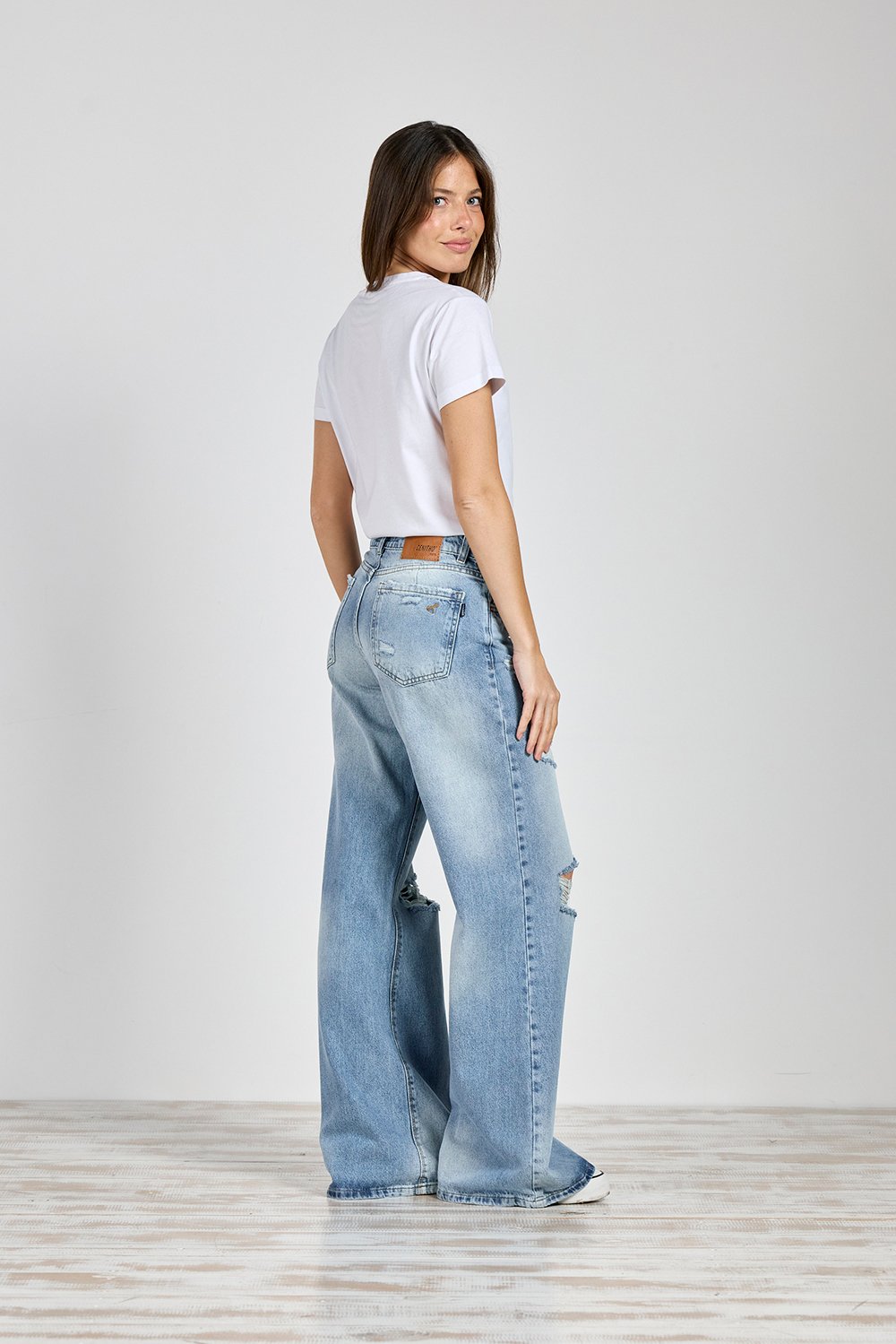ART. 415 | Jean Wide Leg Azul Con Roturas Talles 36 Al 46 Cenitho