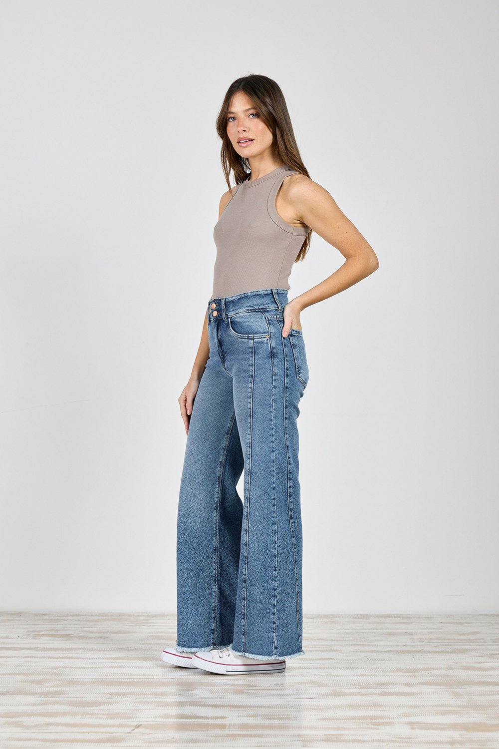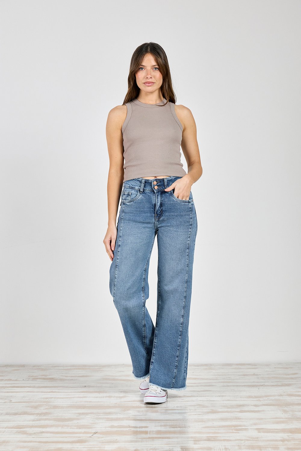 ART. 430 | BAGGY STONE CINTURA ANCHA CON RECORTE BOTA DESFLECADA ELASTIZADO TALLES 38 AL 46 CENITHO