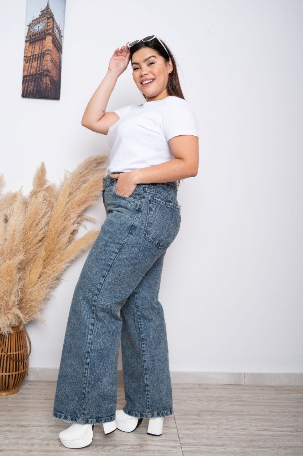 ART 580 Wide Leg Azul Arenado Vintage tiro alto rígido Principessa jeans 48-60