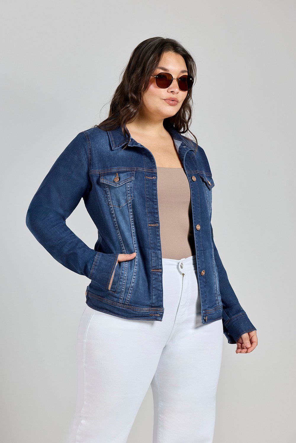 ART. 737 | CAMPERA CLÁSICA AZUL ELASTIZADA PLUS SIZE TALLES 46 AL 54 CENITHO