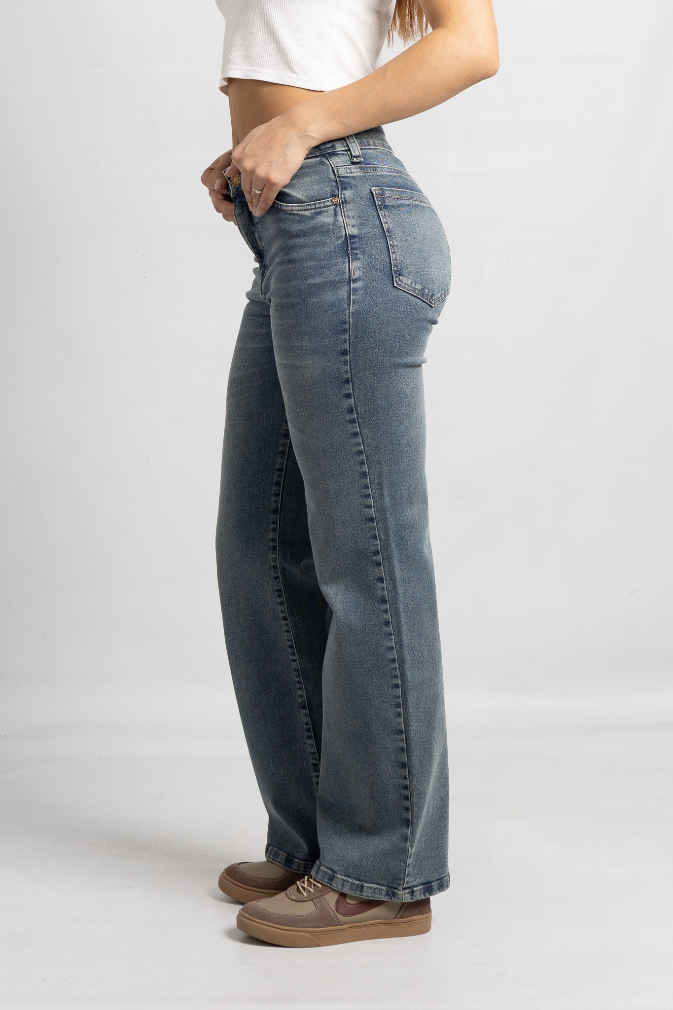 Art. 844 | Wide Leg Matizado celeste con bigote Elastizado tiro alto talles 36 al 46 andar