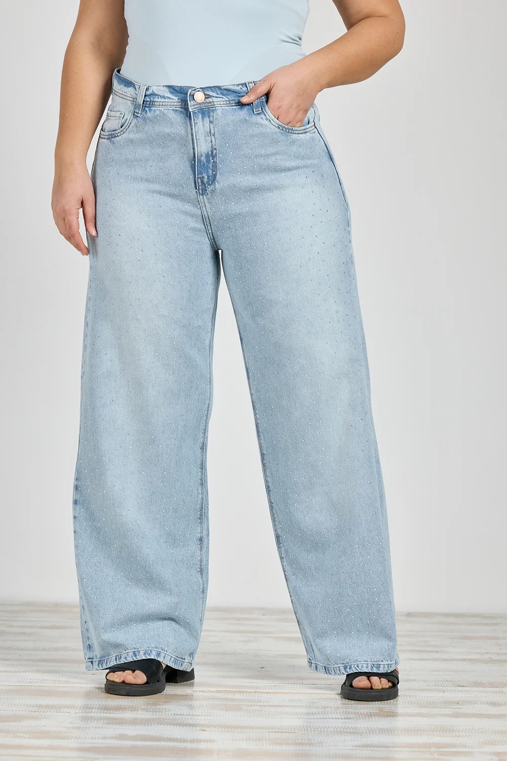 ART. 848 | WIDE LEG CELESTE CON STRASS RÍGIDO TALLES 46 AL 54 CENITHO