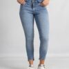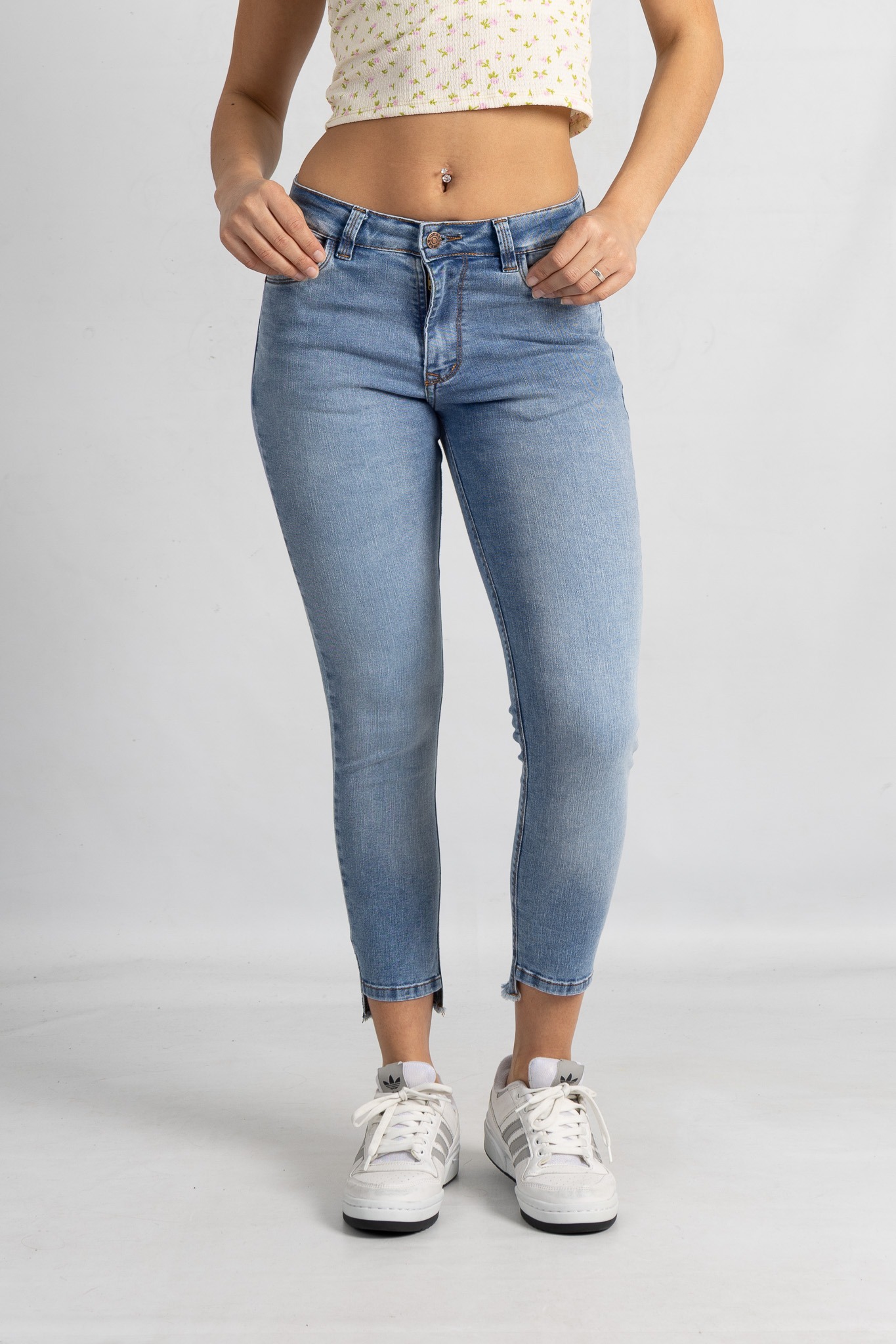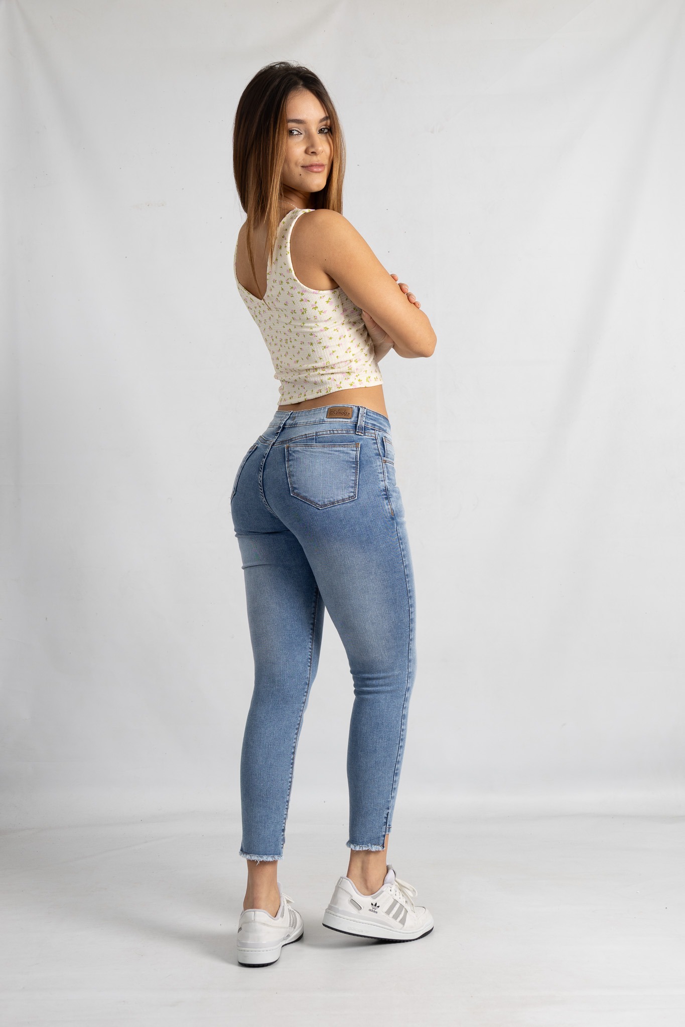 ART 864 | SKINNY CELESTE NEVADO ELASTIZADO HILO MARRON TIRO MEDIO TALLES 36 AL 46 ANDAR