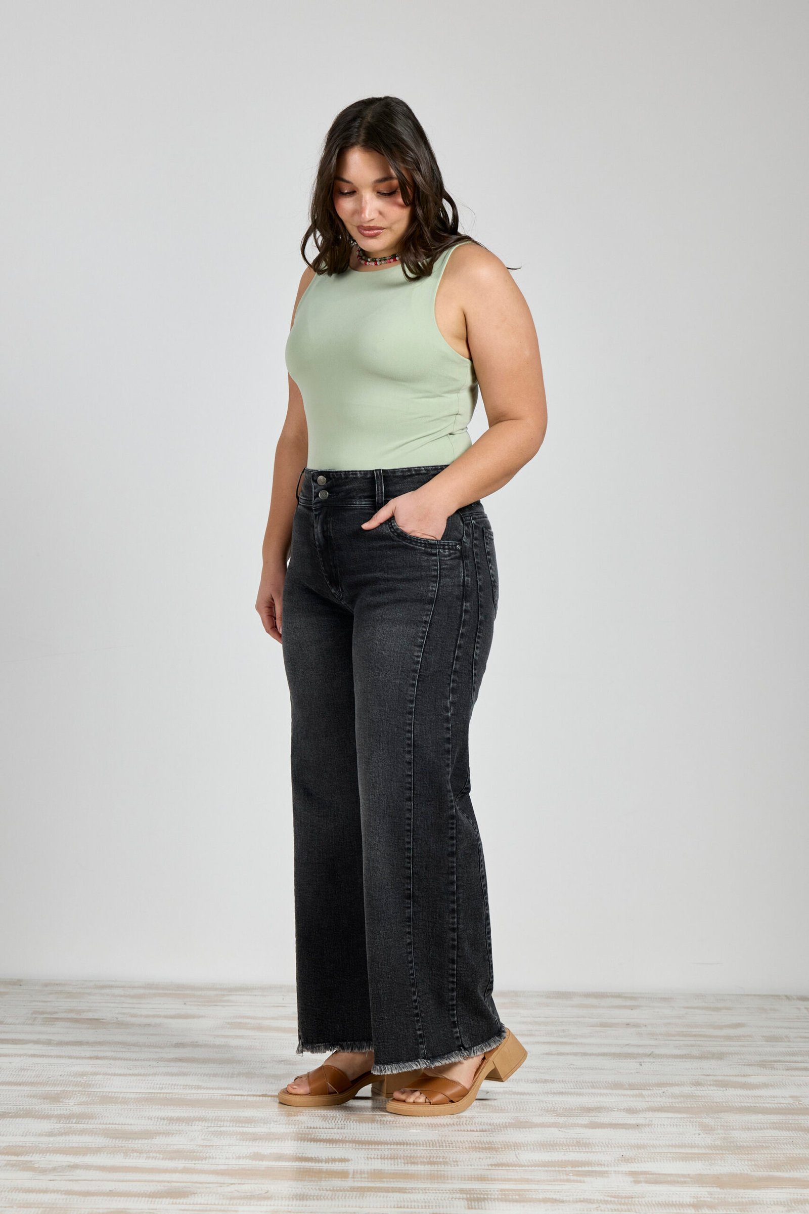 ART. 883 | BAGGY NEGRO ELASTIZADO CINTURA ANCHA CON RECORTE DEFLECADO EN BOTA TALLES 46 AL 54 CENITHO