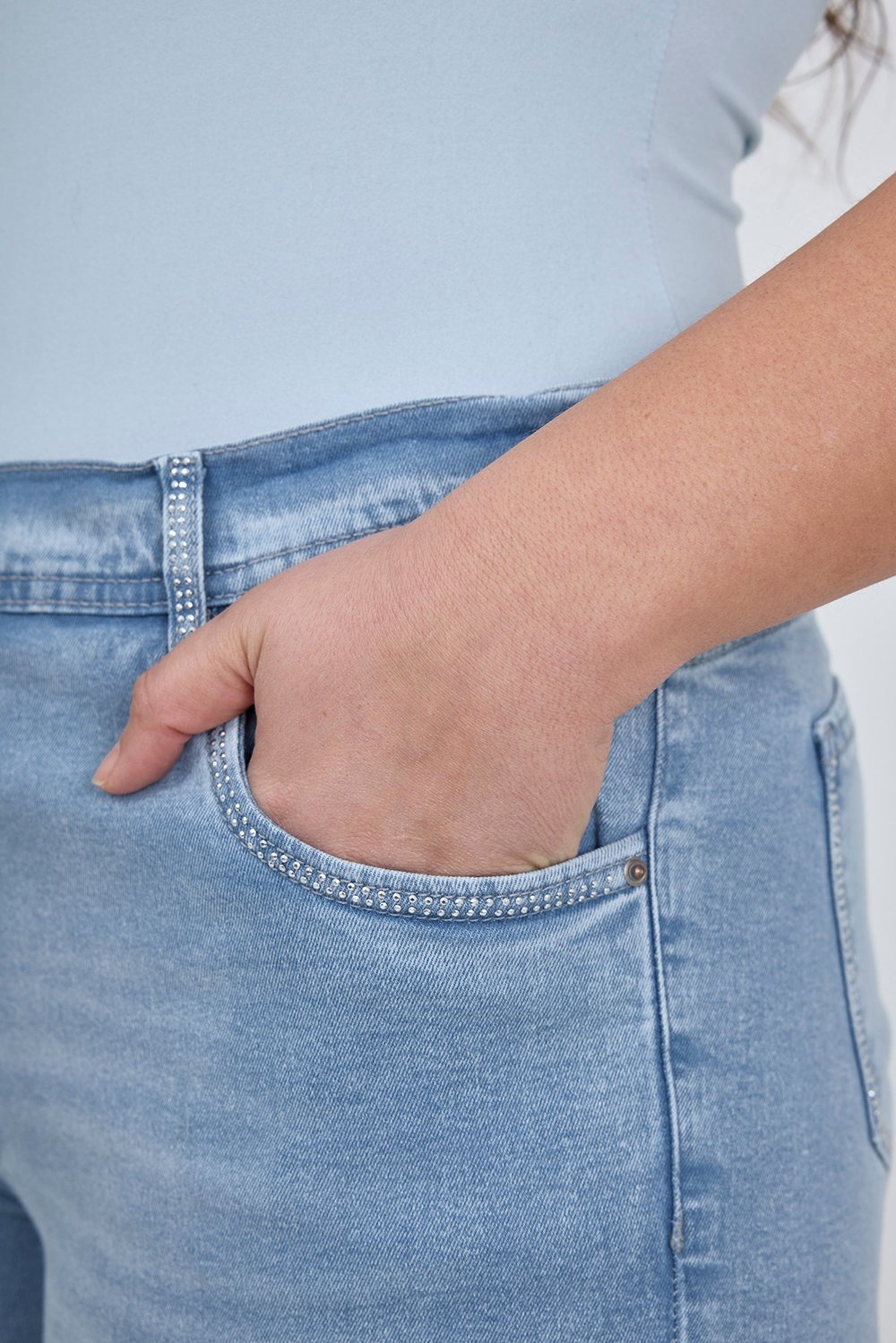 ART. 890 | CHUPIN CELESTE CLÁSICO CON STRAS EN BOLSILLO Y PASACINTO TIRO ALTO TALLES 46 AL 54 CENITHO