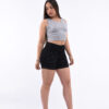 ART. AMBAR | SHORT CELESTE ELASTIZADO CON BRILLO STRASS TIRO ALTO TALLES 36 AL 56 RUMAJU