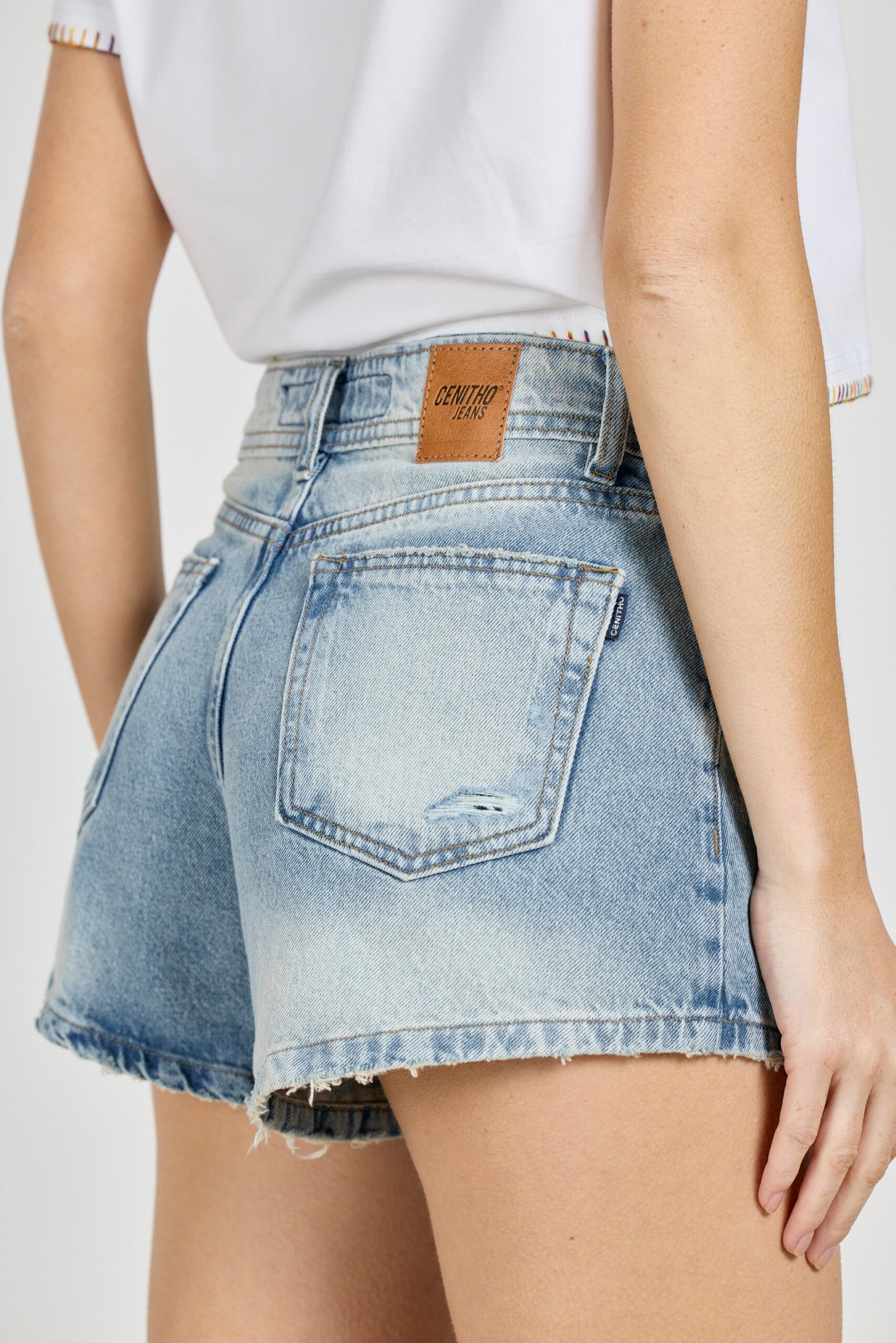 ART. C-114 | SHORT CELESTE MATIZADO CON MICRO ROTURA RÍGIDO TIRO ALTO TALLES 36 AL 46 CENITHO