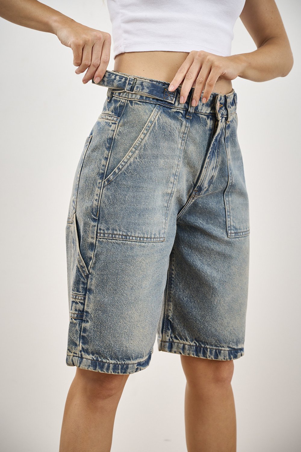 ART. C-79 | BERMUDA BAGGY AZUL OXIDO RIGIDO CON HEBILLA TALLES DEL 40 AL 46 CENITHO