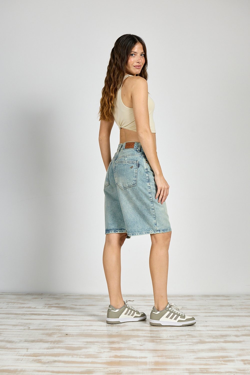 ART. C-87 | BERMUDA BAGGY CELESTE OXIDO CLÁSICO RÍGIDO TIRO MEDIO TALLES 36 AL 46 CENITHO