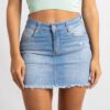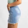 Art. M-02 | Mini Celeste Elastizado Desflecado H/B Roto Picado tiro alto talles 36 al 46 andar