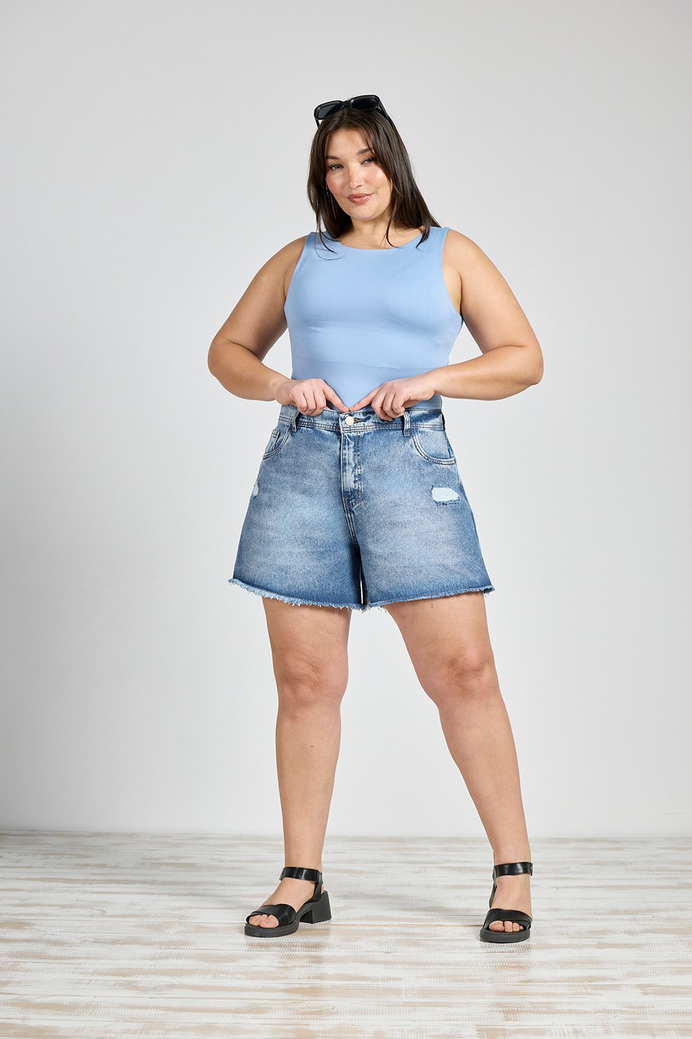 ART. M-541 | SHORT AZUL CON ROTURA RIGIDO DEFLECADO TALLES DEL 46 AL 54 CENITHO