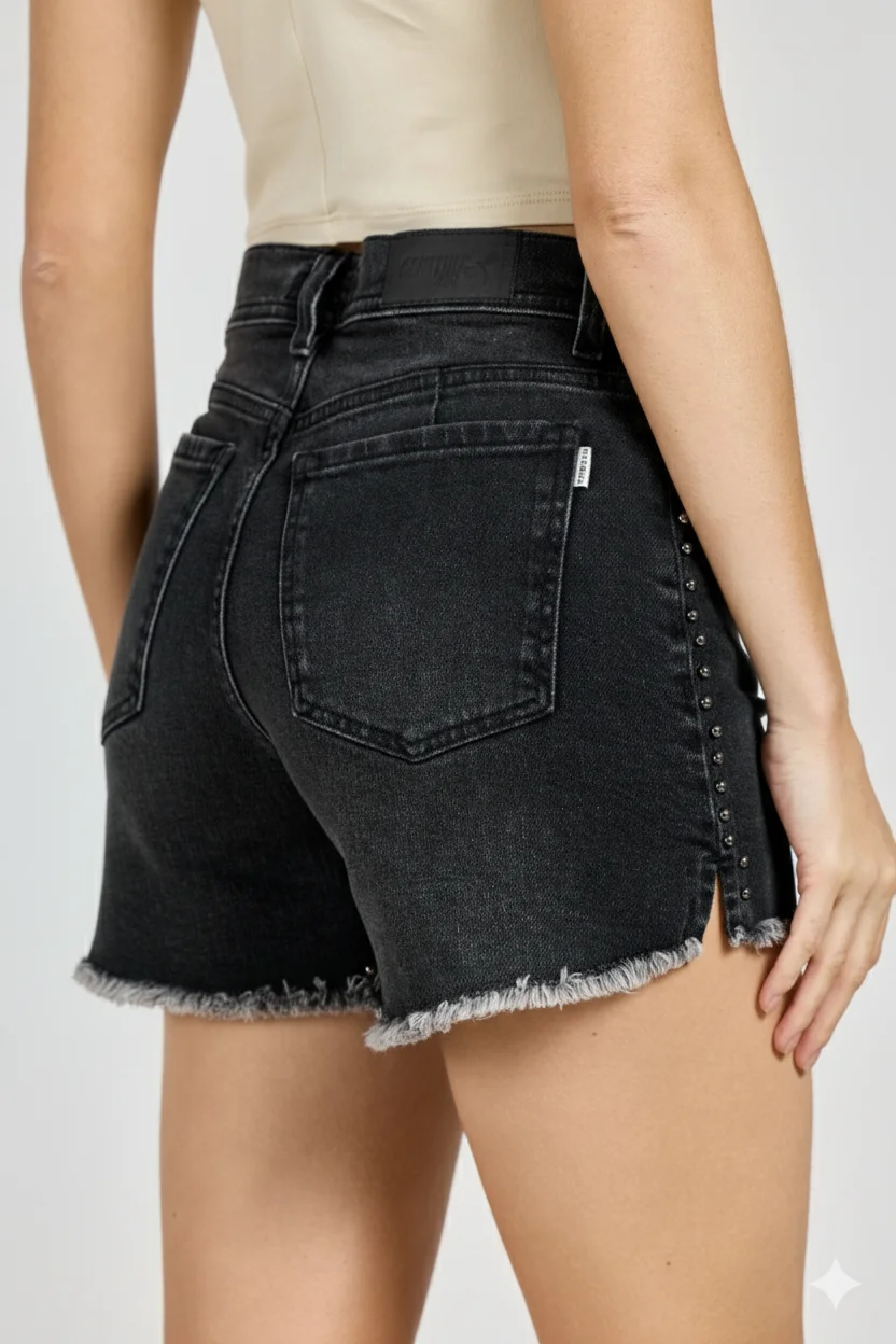 ART. M-580 | SHORT NEGRO HUMO ELASTIZADO TACHA LATERAL DESFLECADO EN BOTA TIRO ALTO TALLES 46 AL 54 CENITHO