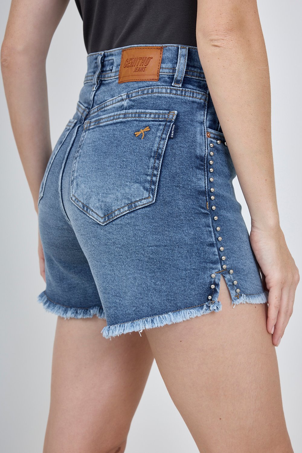 ART. M-581 | SHORT AZUL ELASTIZADO ABERTURA Y TACHAS LATERALES TIRO ALTO TALLES 46 AL 54 CENITHO JEANS