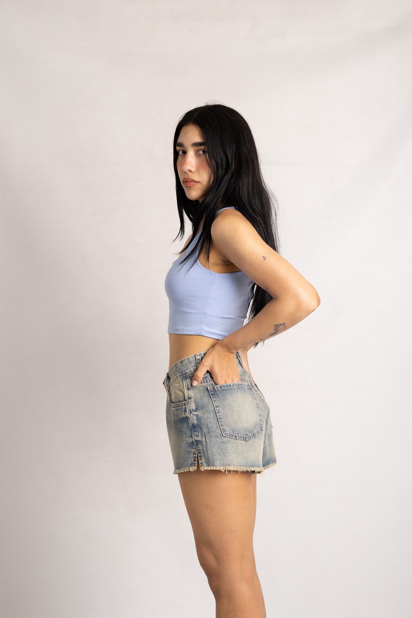 Art. Sh-112 | Short Oxido Cut rigido con aberturas Tiro Bajo H/B tiro bajo talles 36 al 44 andar