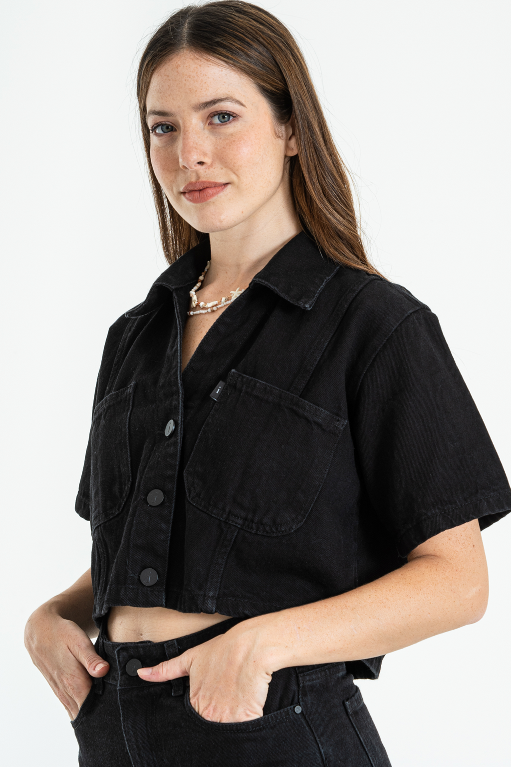 B BESTA CAMISA NEGRO CROPPED RÍGIDO ISOSTASIA S-L