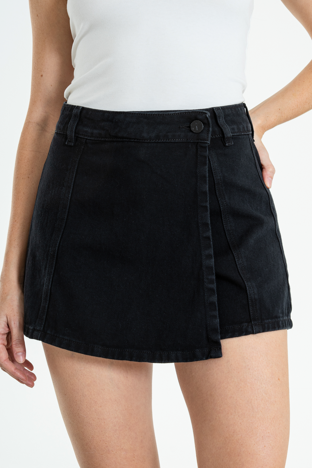 B FERANTO | SKORT NEGRO RIGIDO TIRO ALTO TALLES DEL 34 AL 40 ISOSTASIA