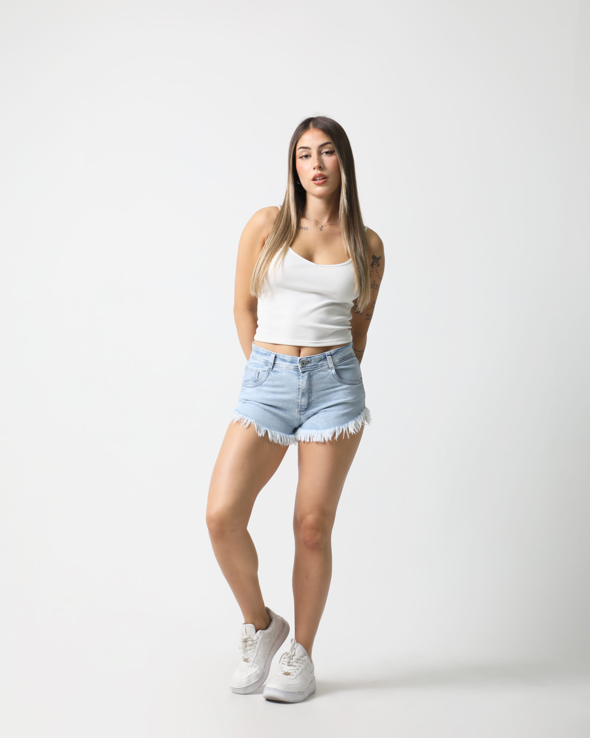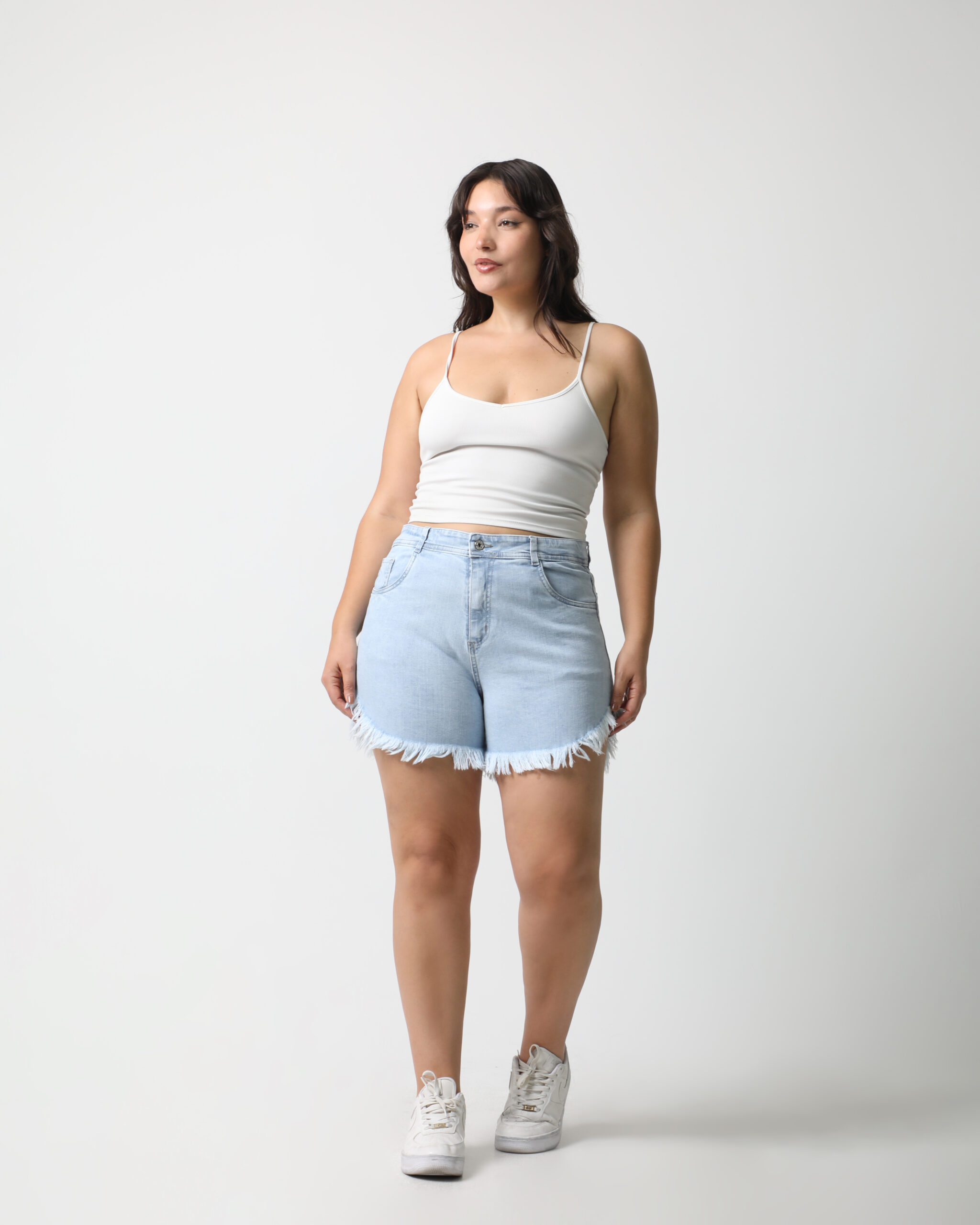 BEACH SHORT CELESTE DESFLECADO TIRO ALTO RÍGIDO SONNE 36-60