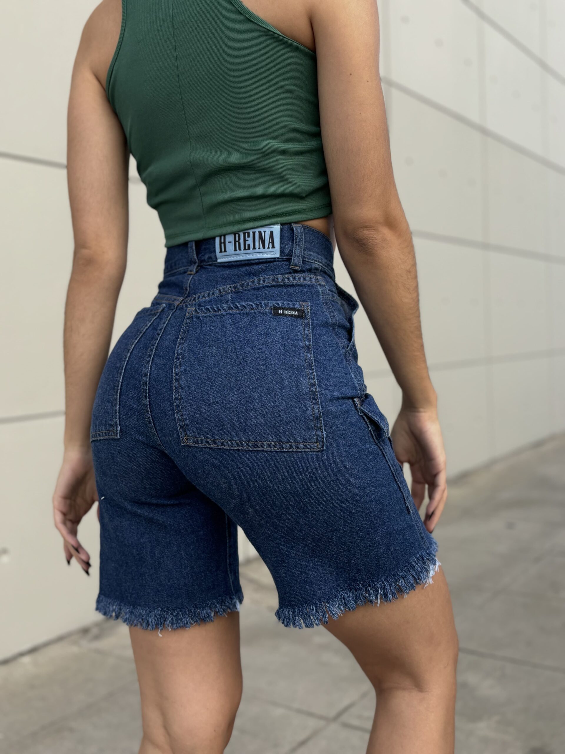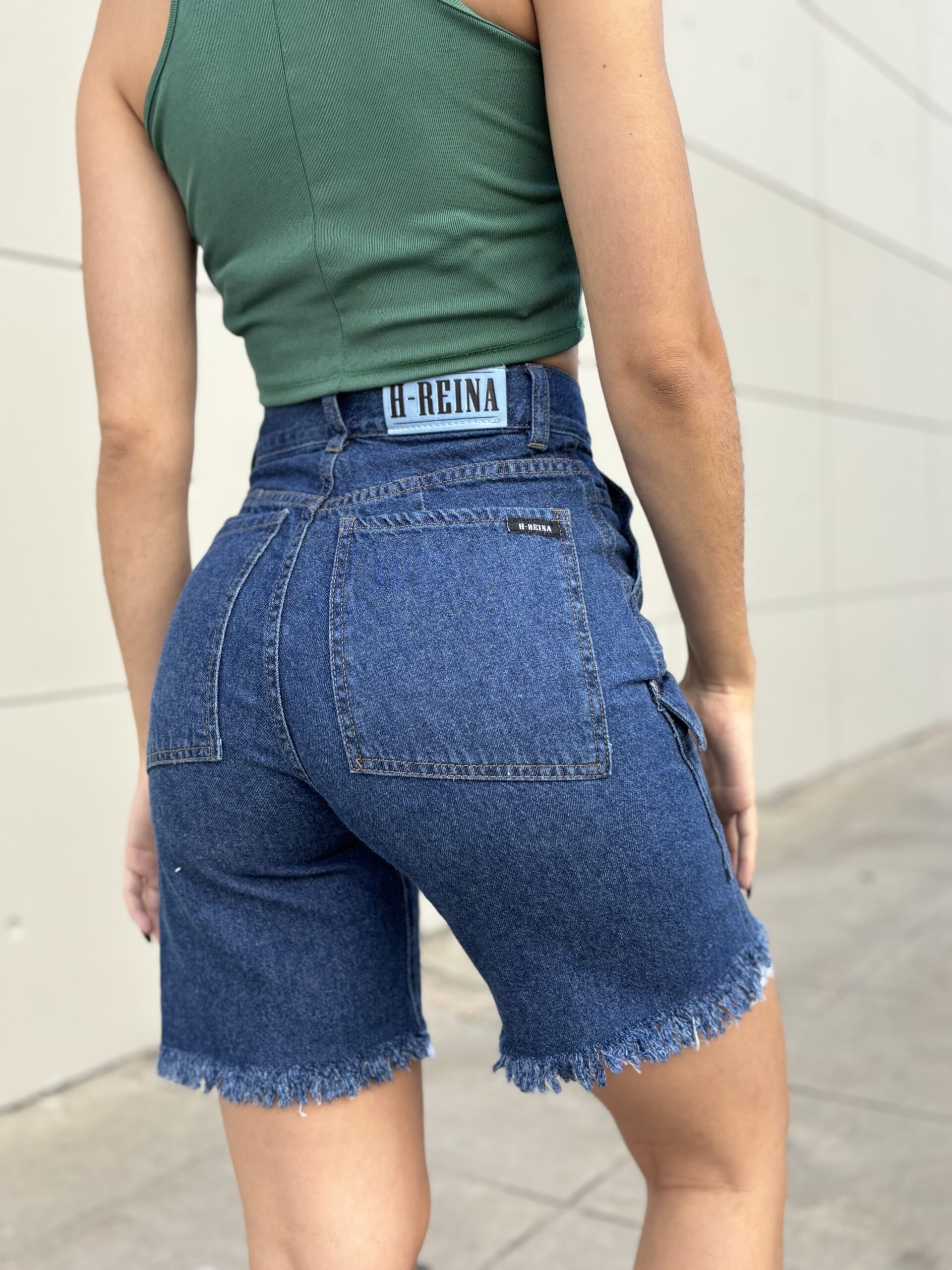BERMUDA LOVER AZUL CARGO DESFLECADA TIRO ALTO TALLE 40 AL 46 H-REINA