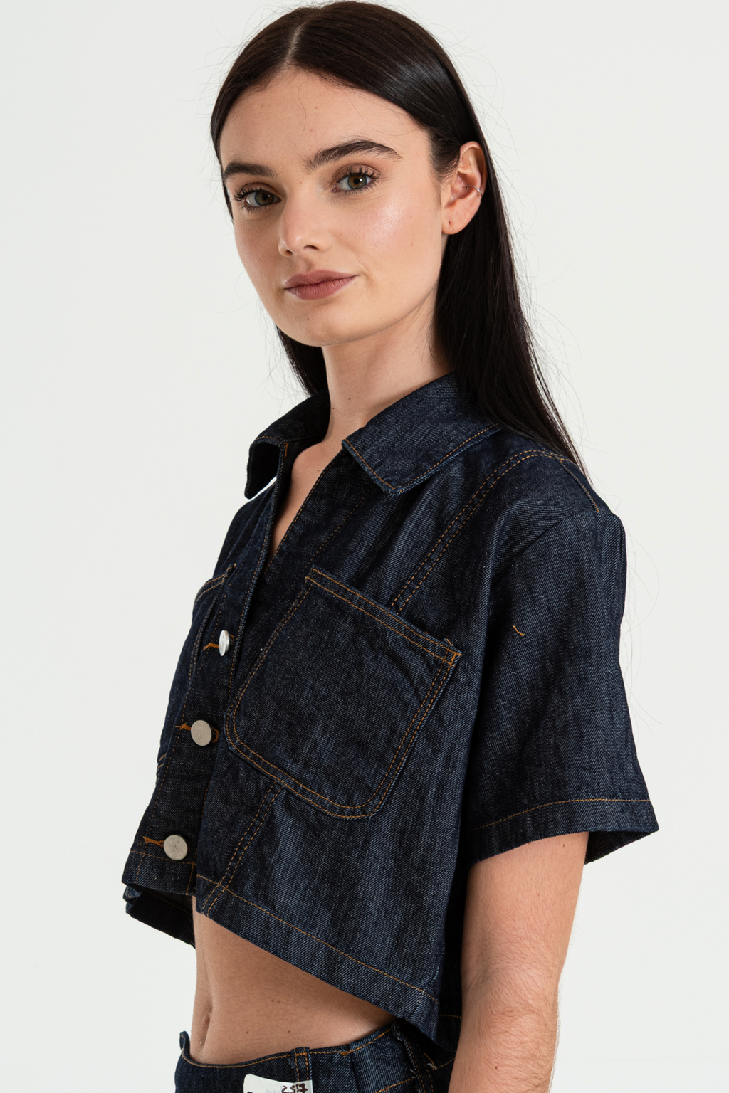 BESTA CAMISA DENIM CROPPED ESCOTE EN V ISOSTASIA UNICO S