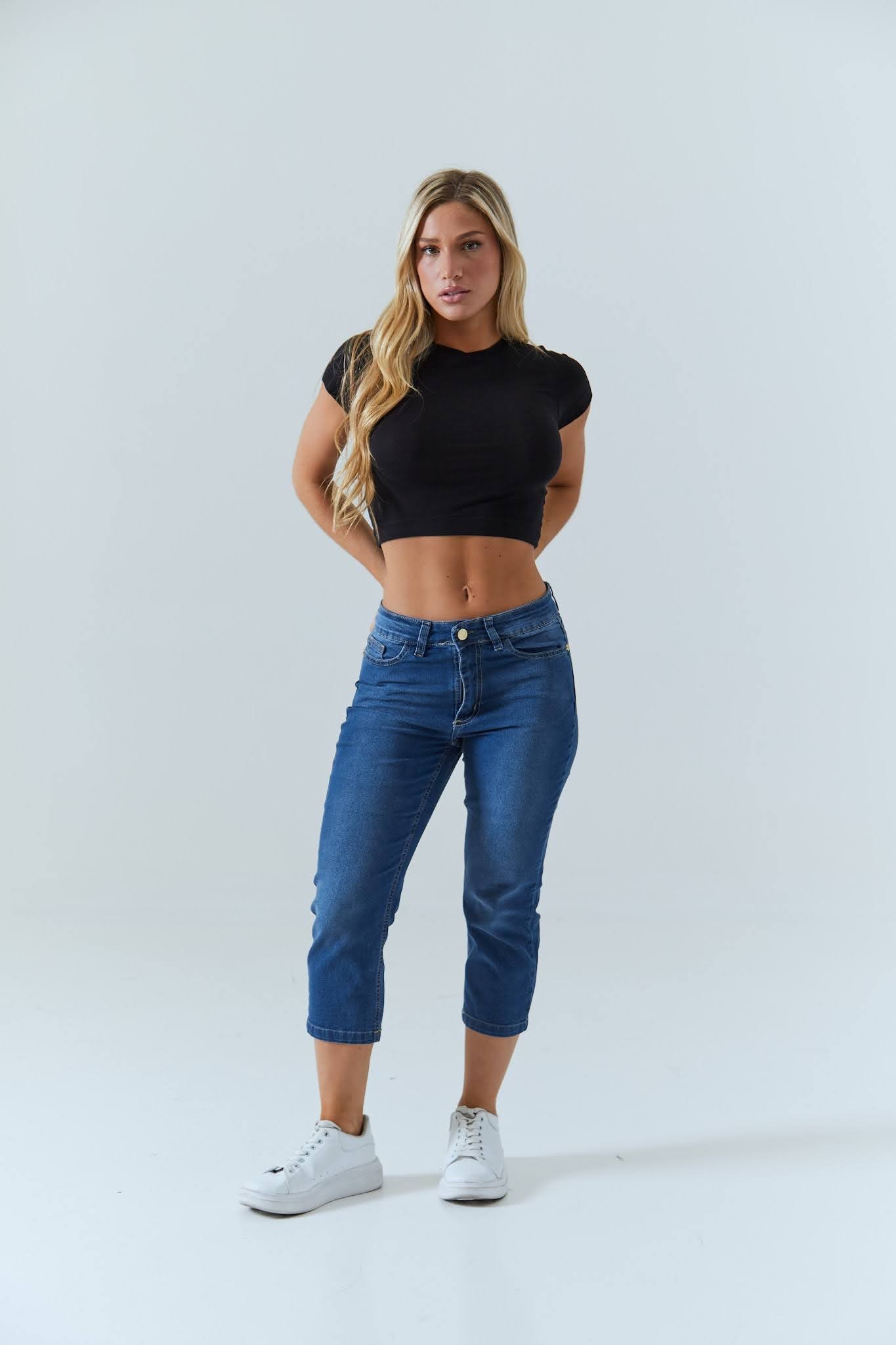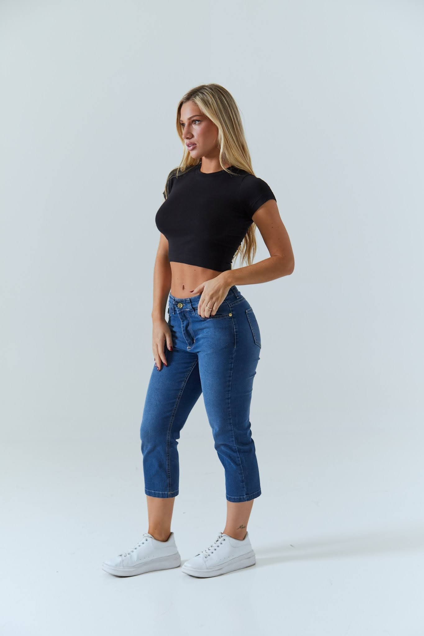 BRENDA | CAPRI DE JEAN ELASTIZADO CELESTE INTENSO TALLES 38 AL 60 TORINE