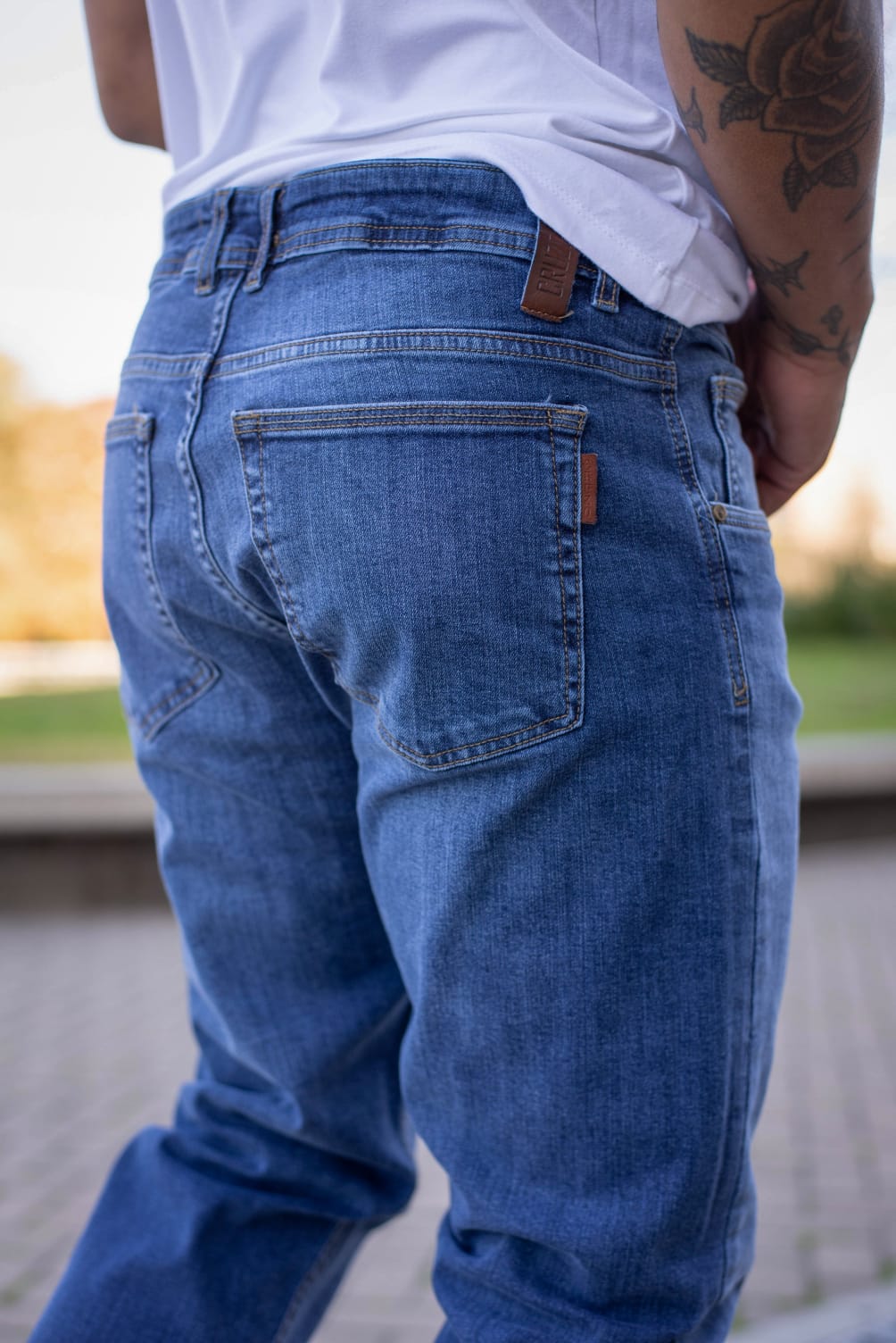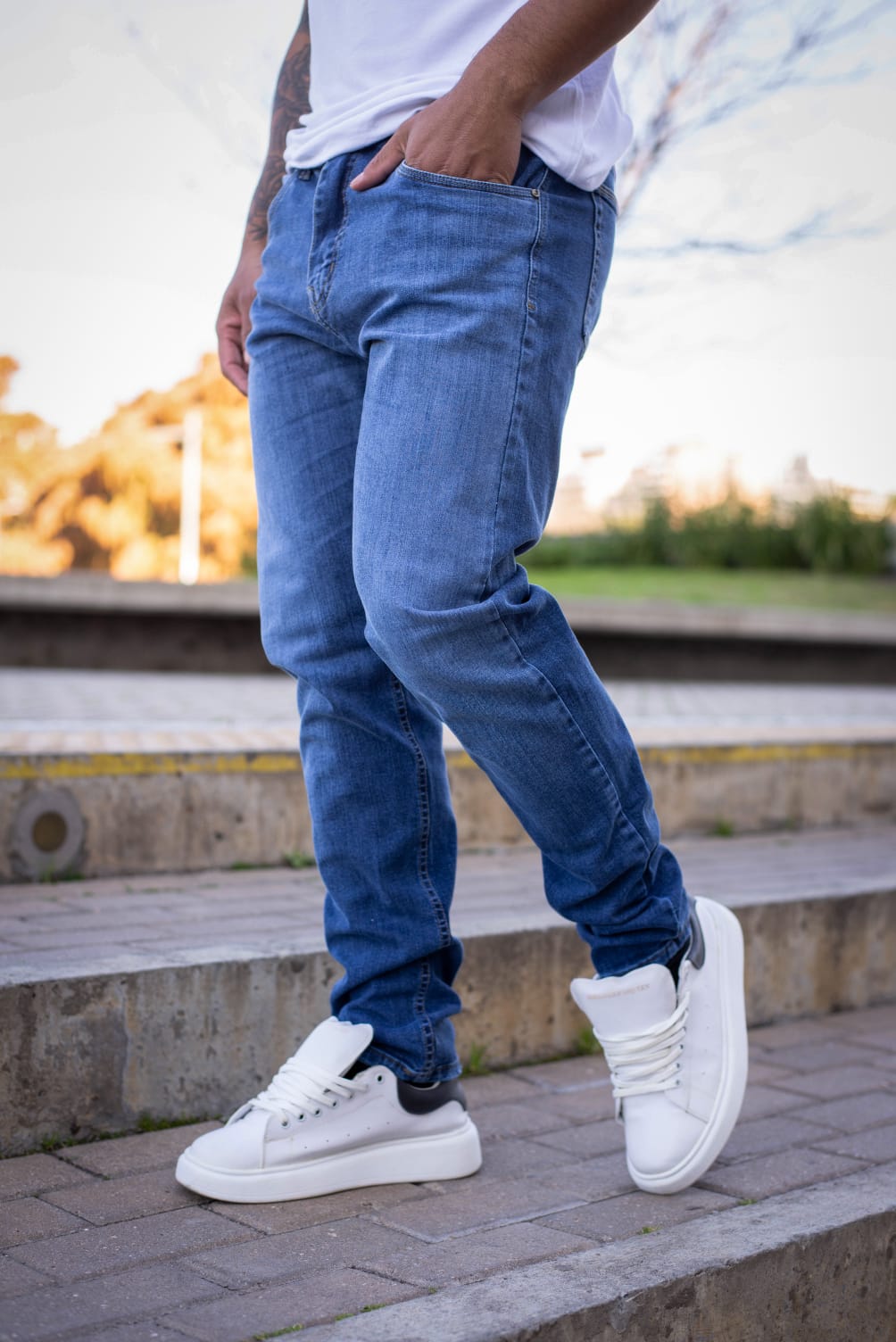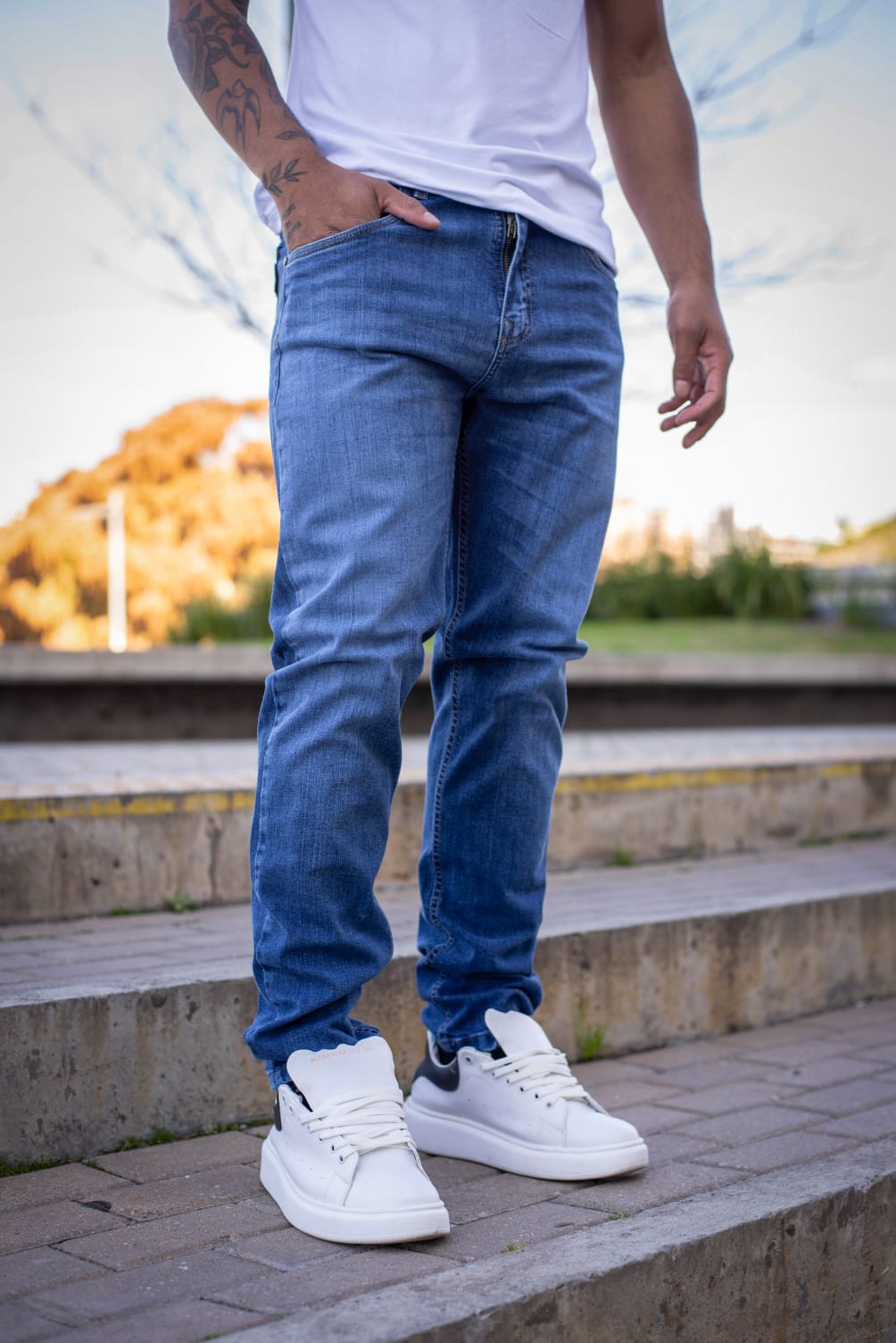 BROOKLYN JEAN SEMI CHUPÍN SEMIELASTIZADO AZUL GASTADO C/BIGOTES CRUZO 40-50