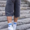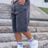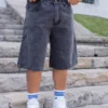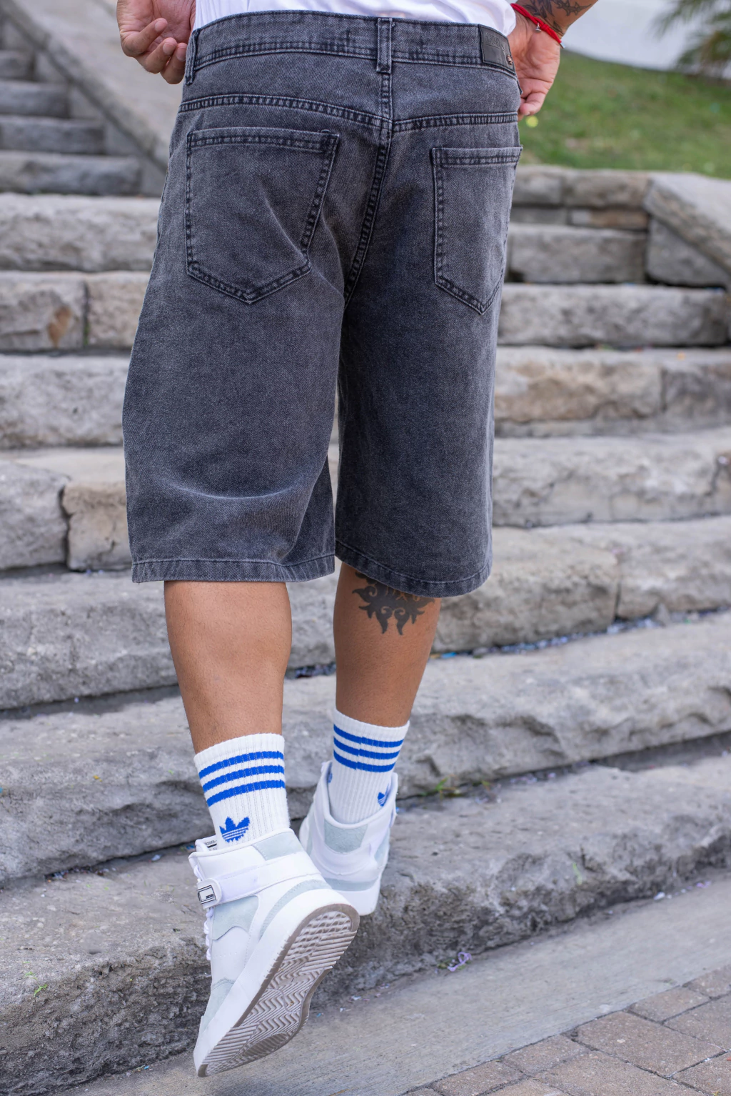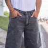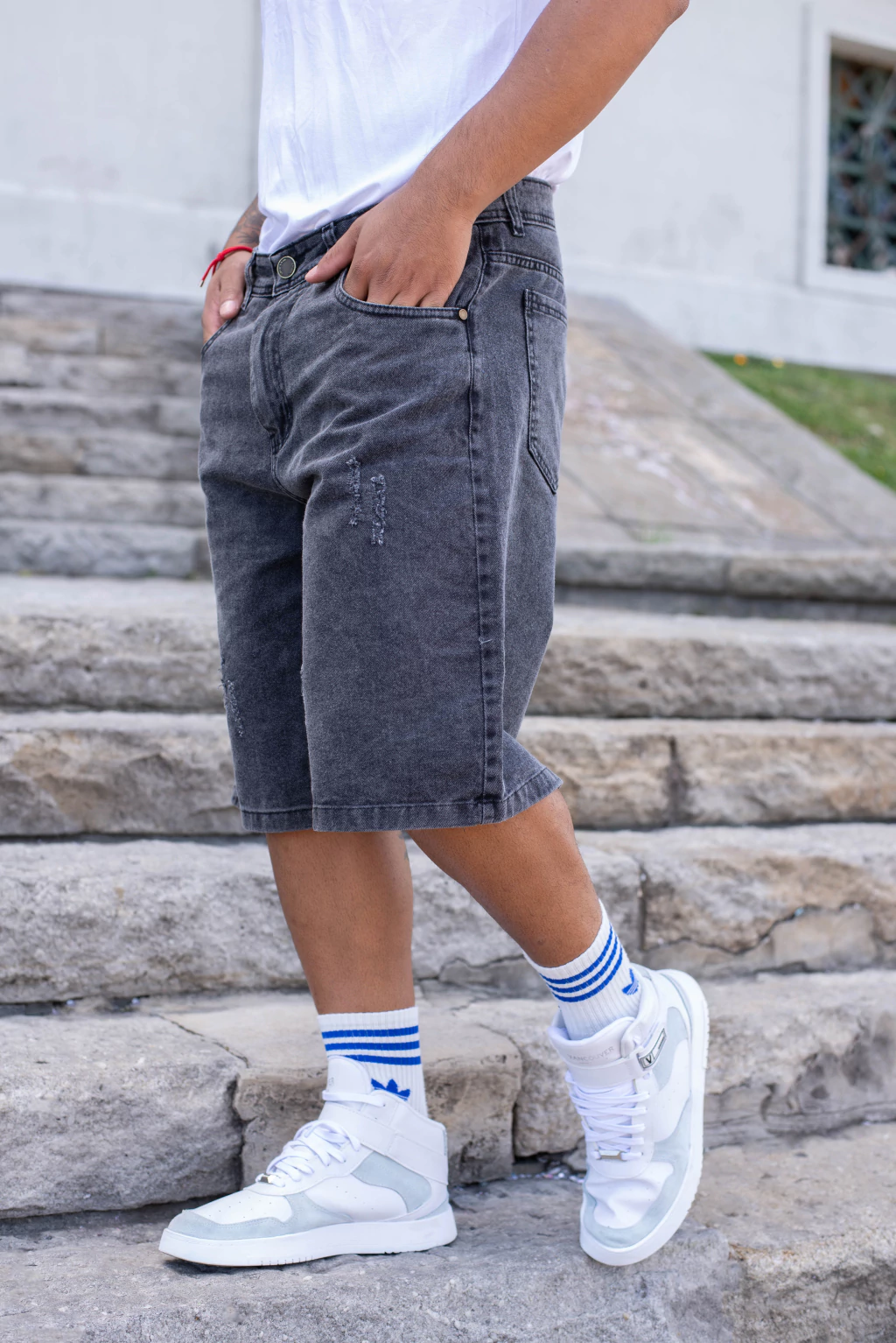 BRUSELAS I BERMUDA BAGGY GRIS NEVADO DE JEAN RIGIDO CON PEQUEÑOS DESGASTES TALLES 38 AL 48 CRUZO