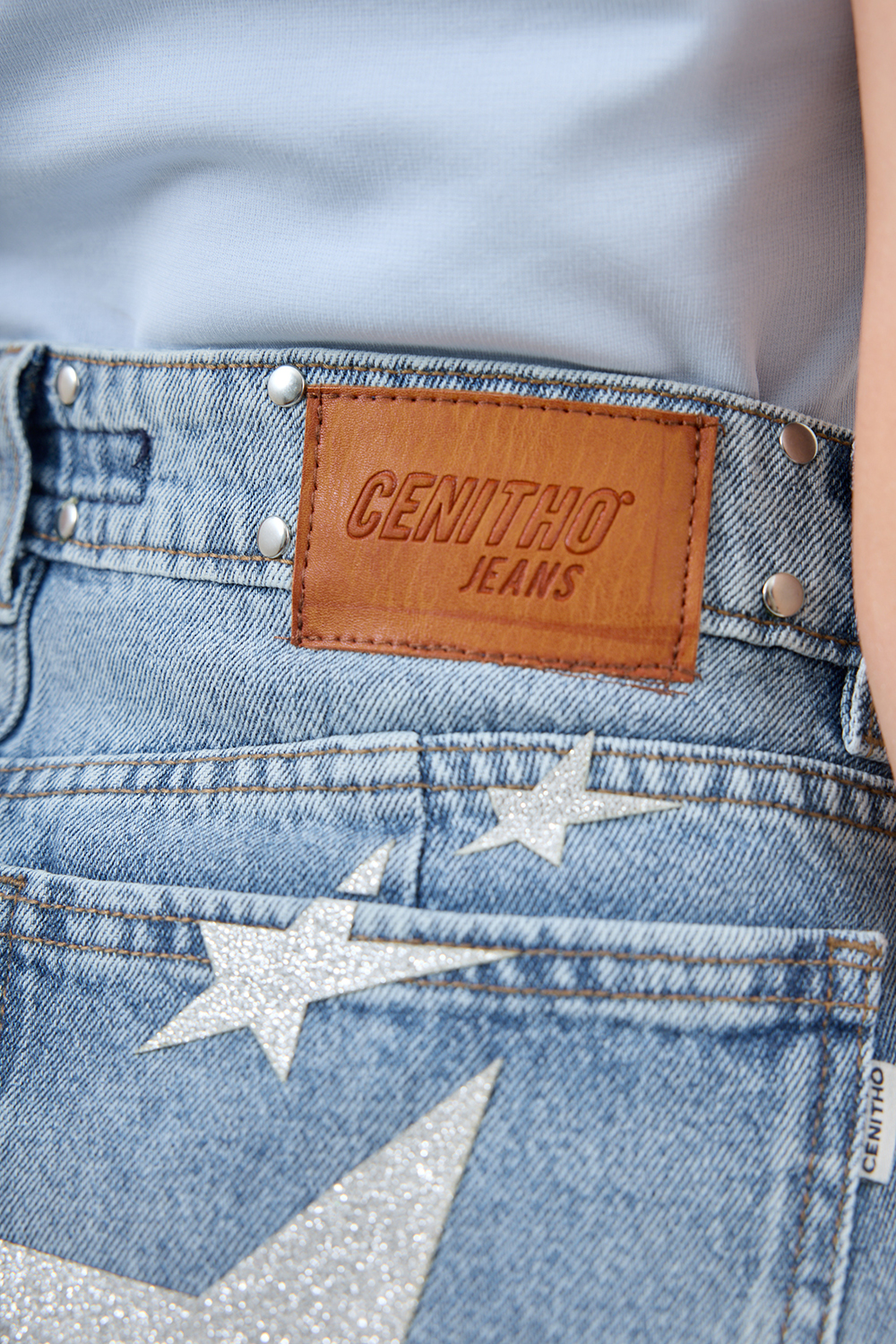 C-139 | SHORT AZUL NEVADO RIGIDO CON ESTRELLAS Y TACHAS TALLES DEL 36 AL 46 CENITHO