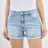 C-142 | SHORT CELESTE ELASTIZADO CON TACHAS LATERALES DEFELCADO TIRO ALTO TALLES 36 AL 46 CENITHO JEANS