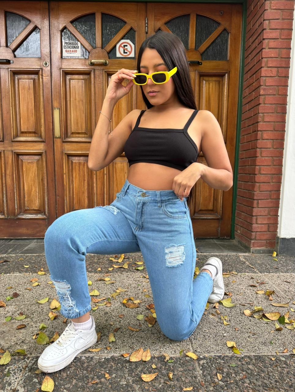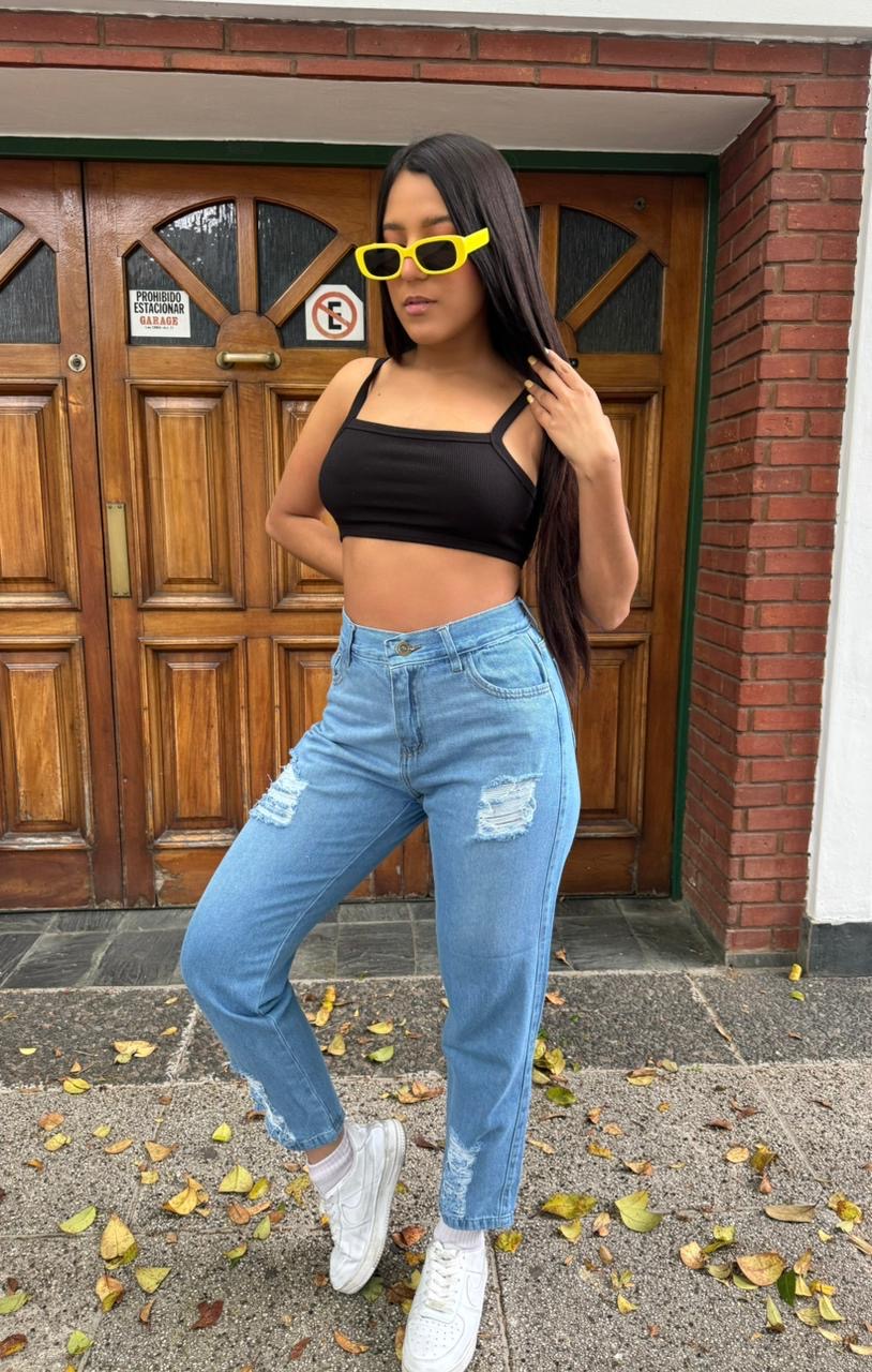 CALIFORNIA JEAN MOM RÍGIDO C/ROTURA AZUL CLARO ANA CLARA 36-54