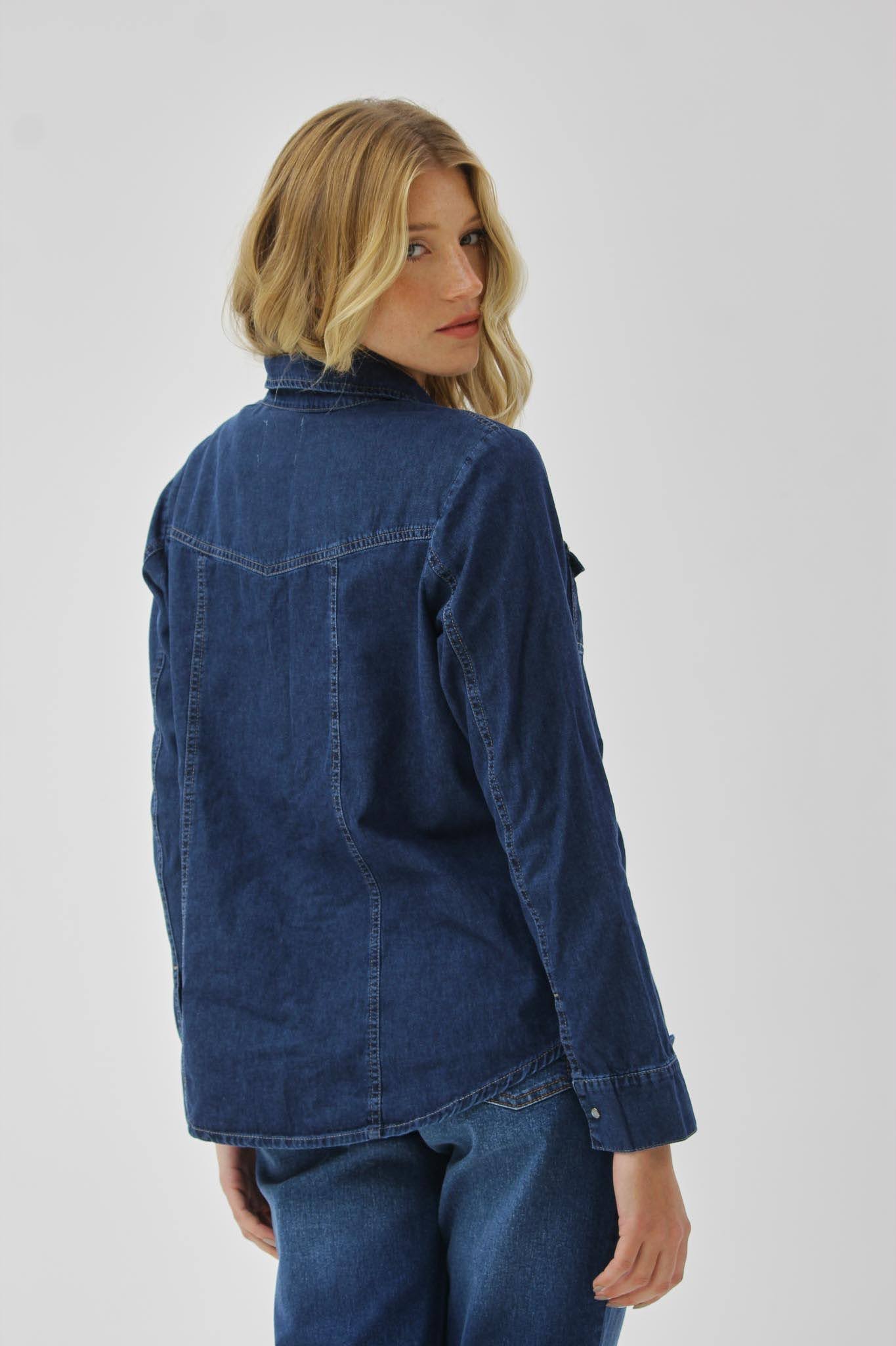 CAMISA JEAN RIGIDA AZUL OSCURO MEDUSA TALLES DEL S AL L TORINE