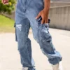 PARADISE JOGGER MOM CELESTE CON ROTURAS RIGIDO TALLES 38 AL 48 CRUZO
