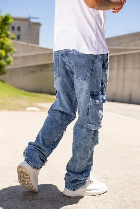 NUBE PANTALON RECTO CARGO RIGIDO CON ROTURA TALLE 38 AL 48 CRUZO