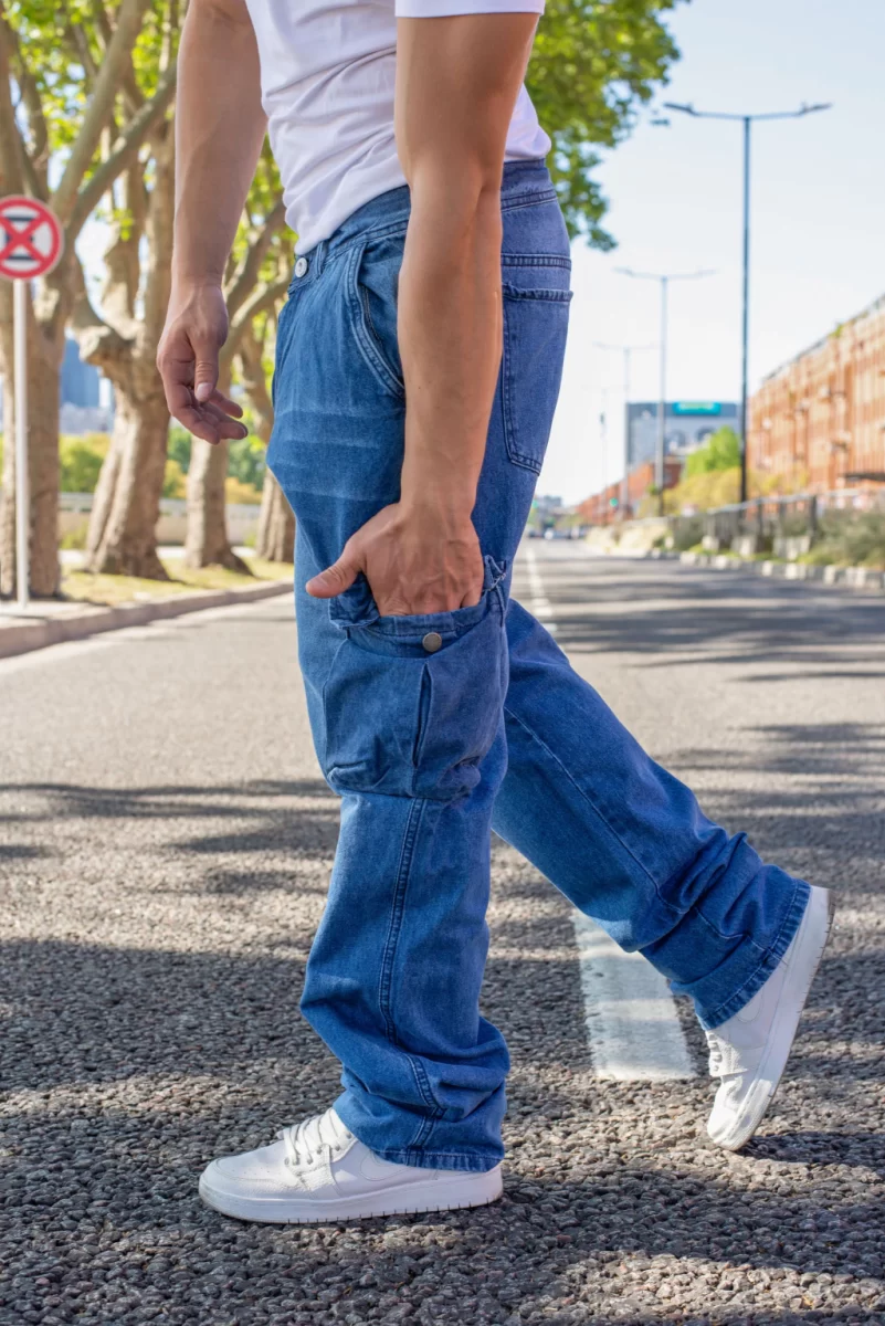 RIVER JEAN RECTO CARGO AZUL RIGIDO TALLES 38 AL 48 CRUZO