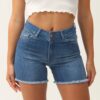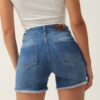 CARLY | SHORT JEAN ELASTIZADO AZUL CON DESFLECADO EN BOTAMANGA TIRO ALTO TALLES 38 AL 50 TORINE