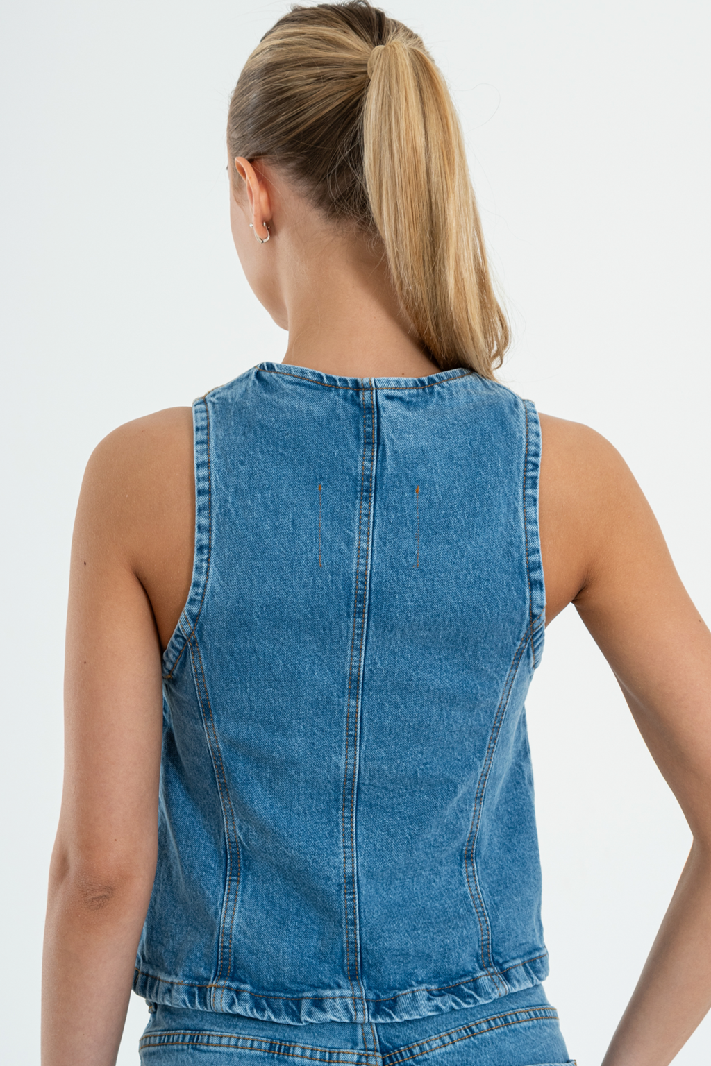 CHANIZA CHALECO AZUL DENIM RÍGIDO ESCOTE V ISOSTASIA S-L