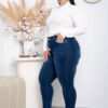 WIDE LEG AZUL TAJO EN BOTA ELASTIZADO TIRO ALTO TALLES 54 AL 58 CRISAL