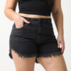 DARLA- SHORT DE JEAN NEGRO DESFLECADO ELASTIZADO TALLES 36 AL 60 SONNE