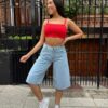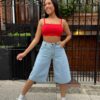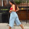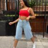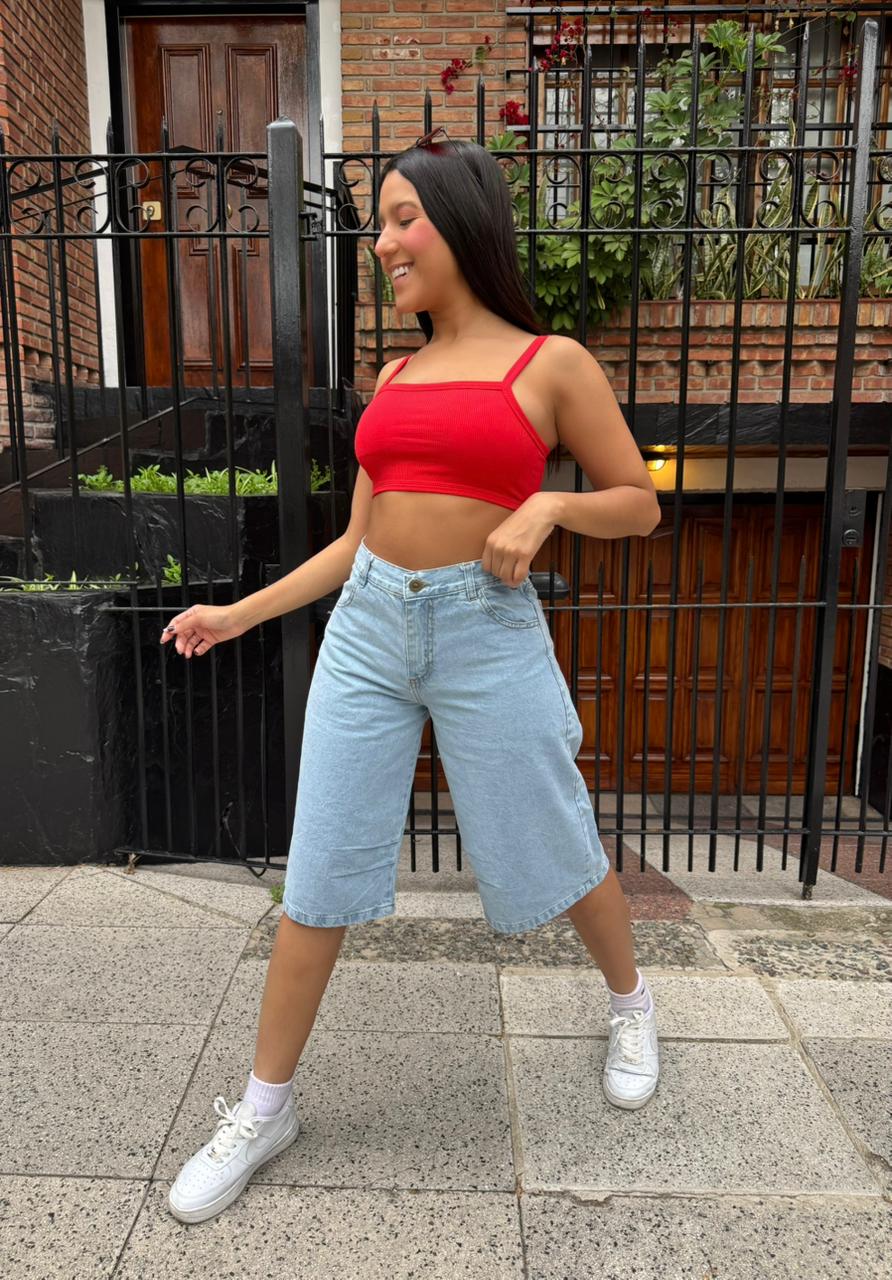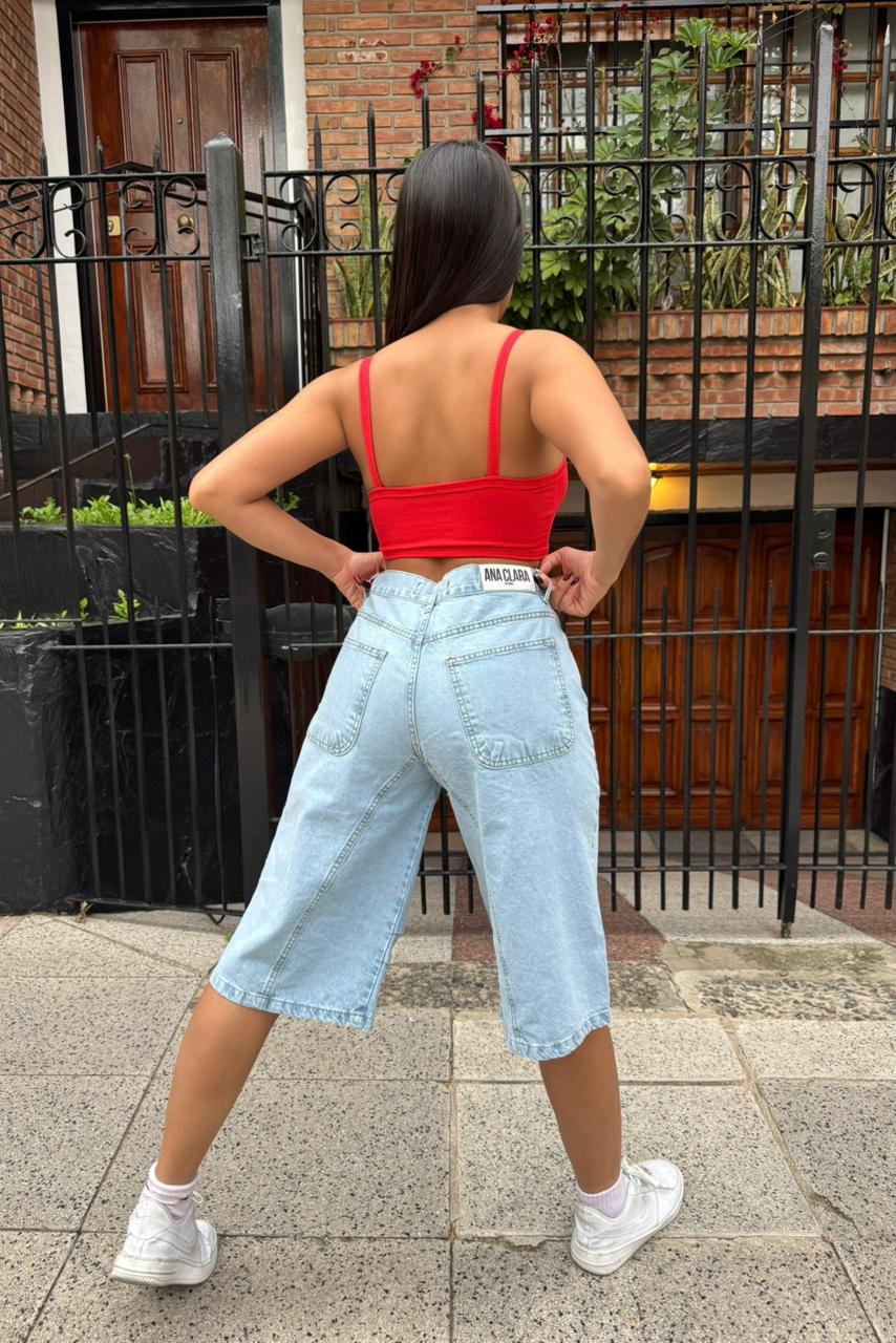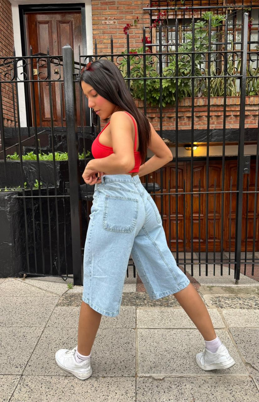 DETROIT I BERMUDA BAGGY CELESTE RIGIDA TIRO ALTO TALLES 36 AL 54 ANA CLARA