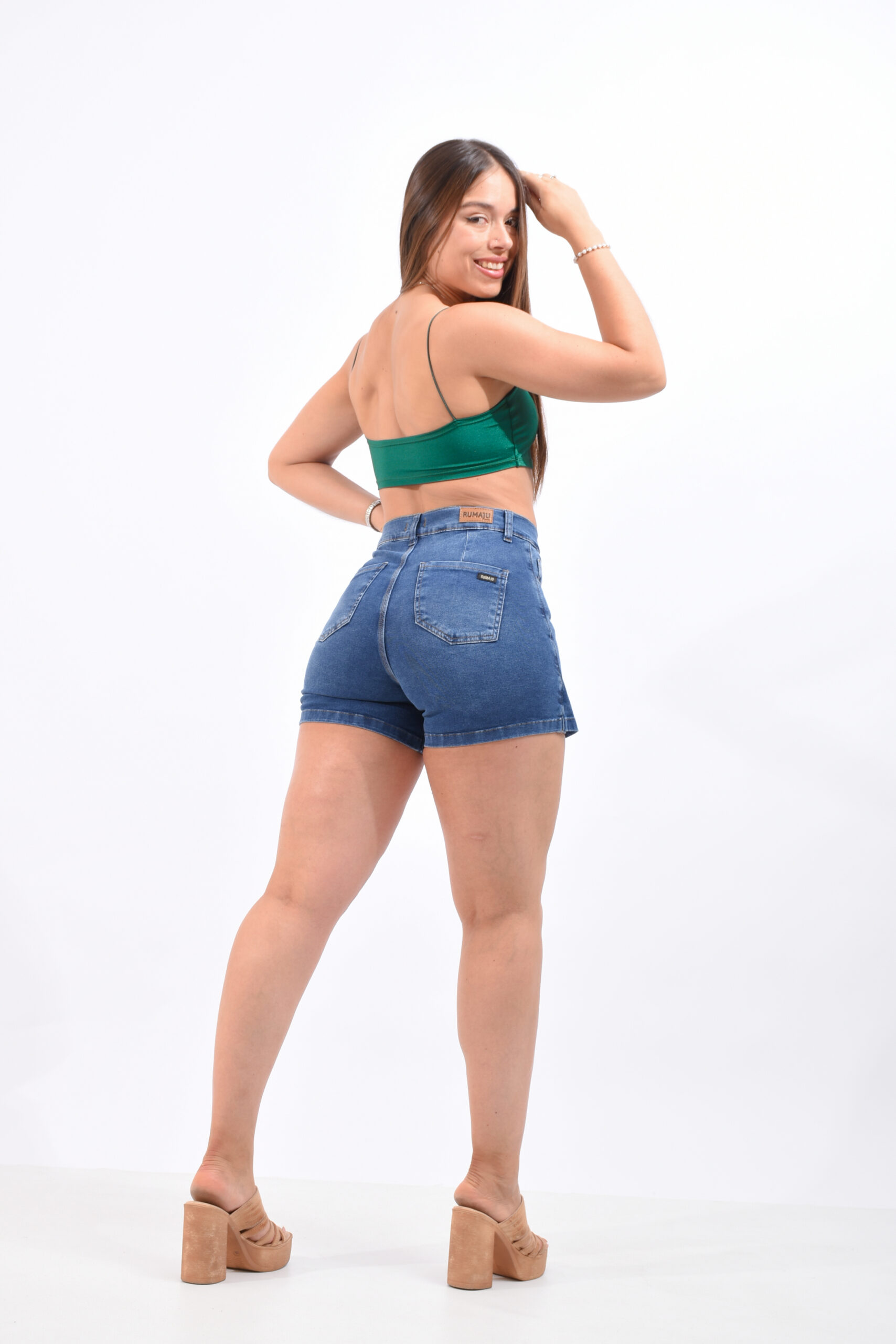 DUNA | SHORT POLLERA AZUL CLASICO ELASTIZADOTIRO ALTO TALLES 38 AL 54 RUMAJU