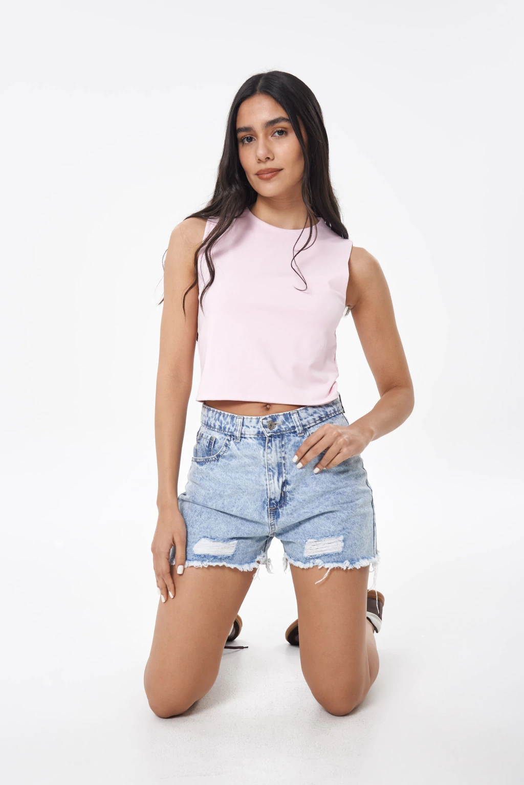FAGNA – SHORT RIGIDO ACYD DESFLECADO Y ROTURAS TIRO ALTO TALLES 34 AL 46 STRIVEN JEANS