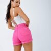 FUCSIA I SHORT MOM RIGIDO CON DOBLE RUEDO TIRO ALTO TALLES 34 AL 46 H-REINA