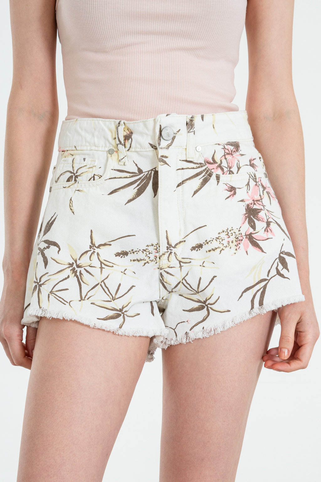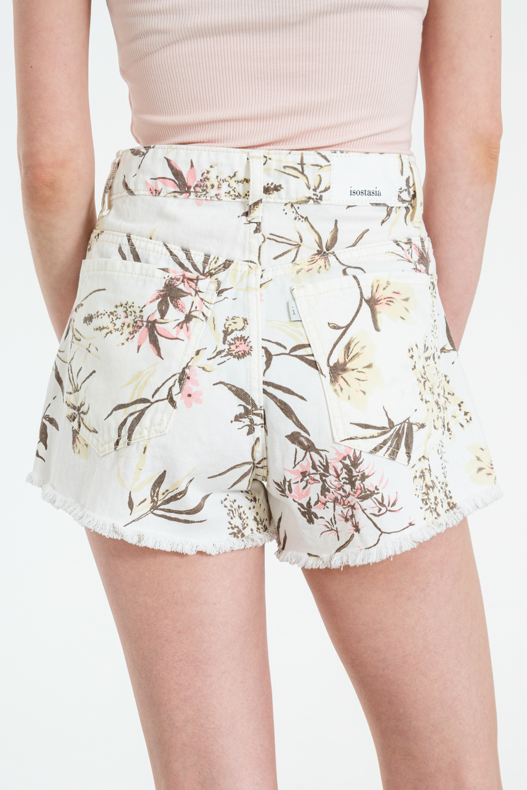 FULET-SHORT BLANCO RIGIDO ESTAMPADO FLOREADO TIRO ALTO TALLES 34 AL 44 ISOSTASIA
