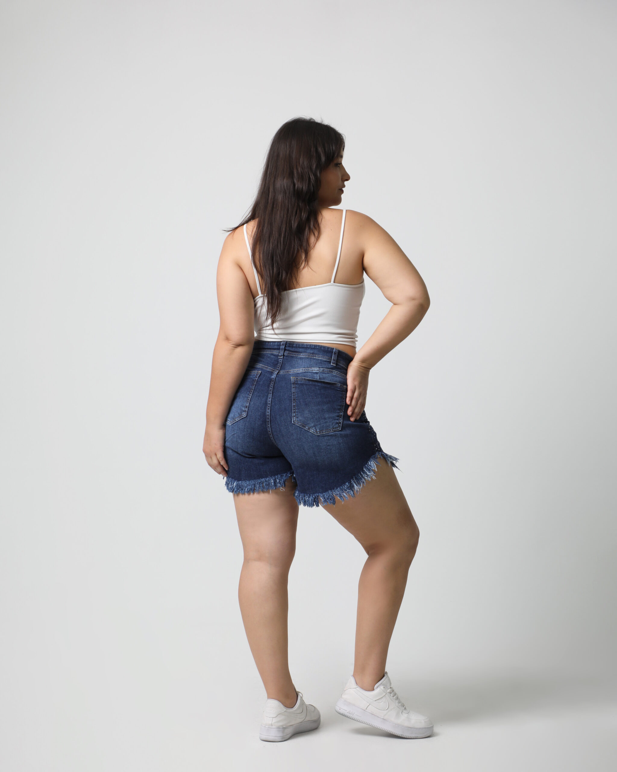 GINA / SHORT DE JEAN AZUL STRASS DESFLECADO EN BOTA TIRO ALTO TALLES 36 AL 60 SONNE