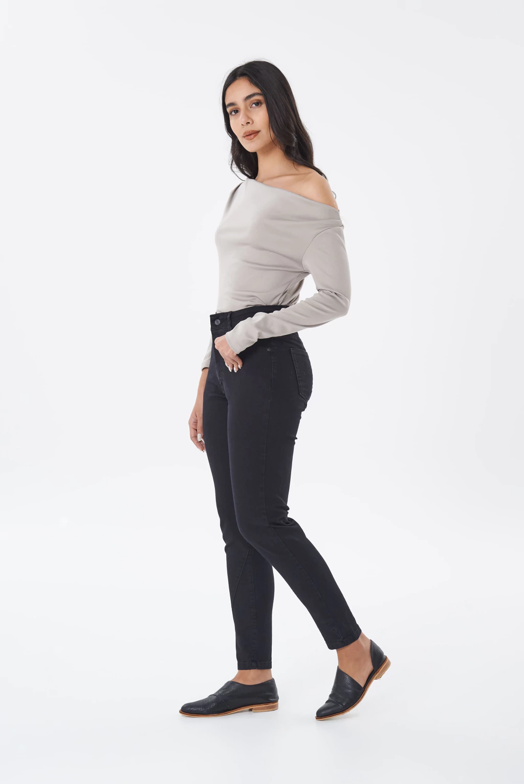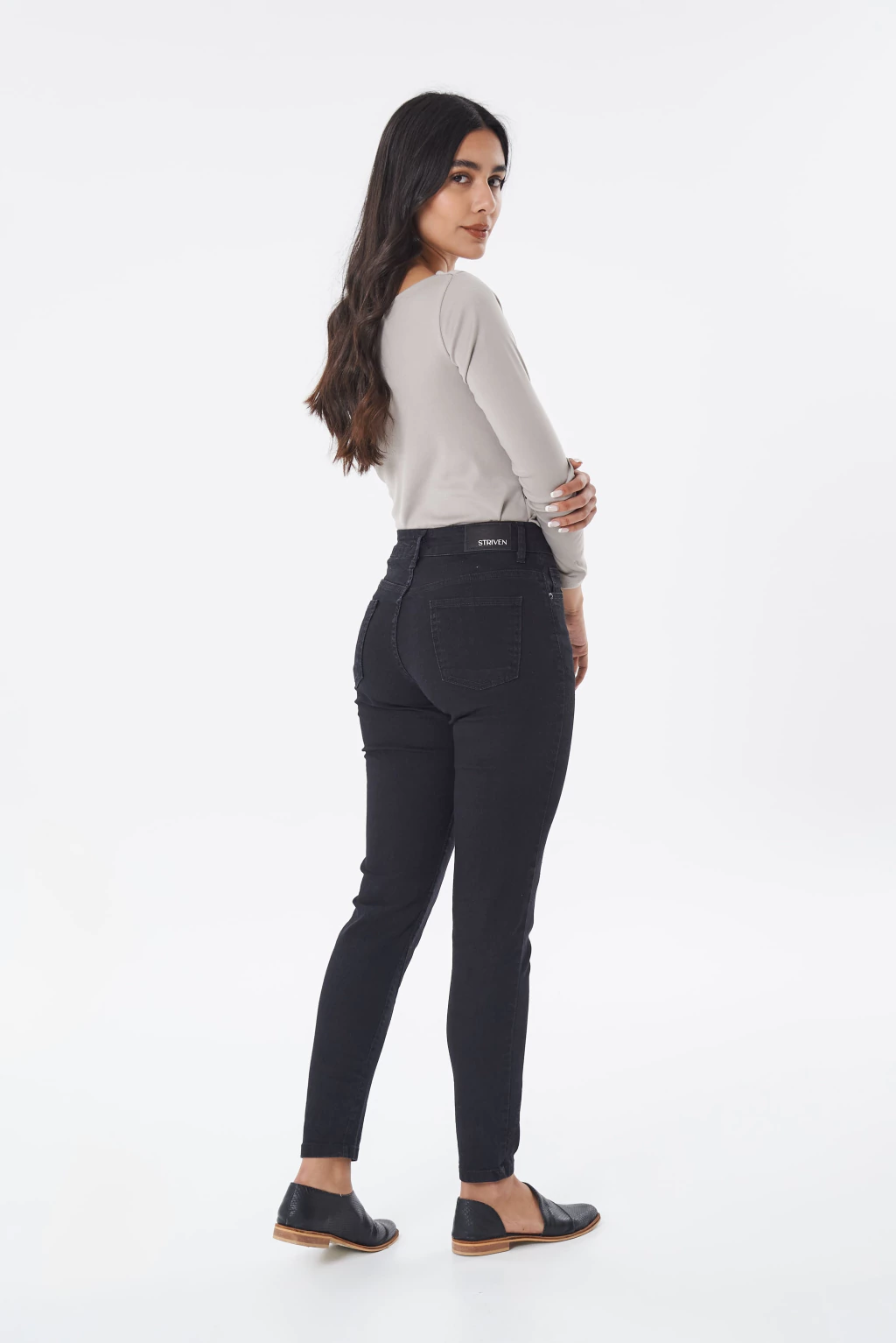 GLENDALE | SKINNY NEGRO COSTURA DIAGONAL ELASTIZADO TIRO ALTO TALLES 36 AL 46 STRIVEN