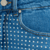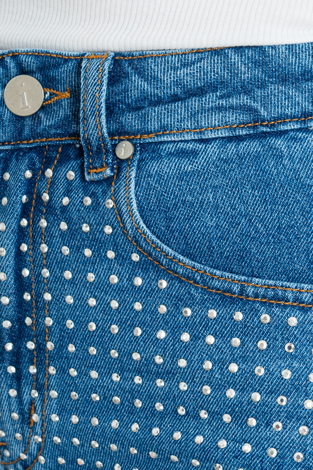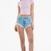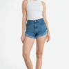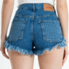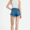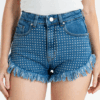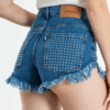H BANKIS | SHORT AZUL RIGIDO CON STRASS Y DESFLECADO TIRO ALTO TALLES DEL 34 AL 44 ISOSTASIA